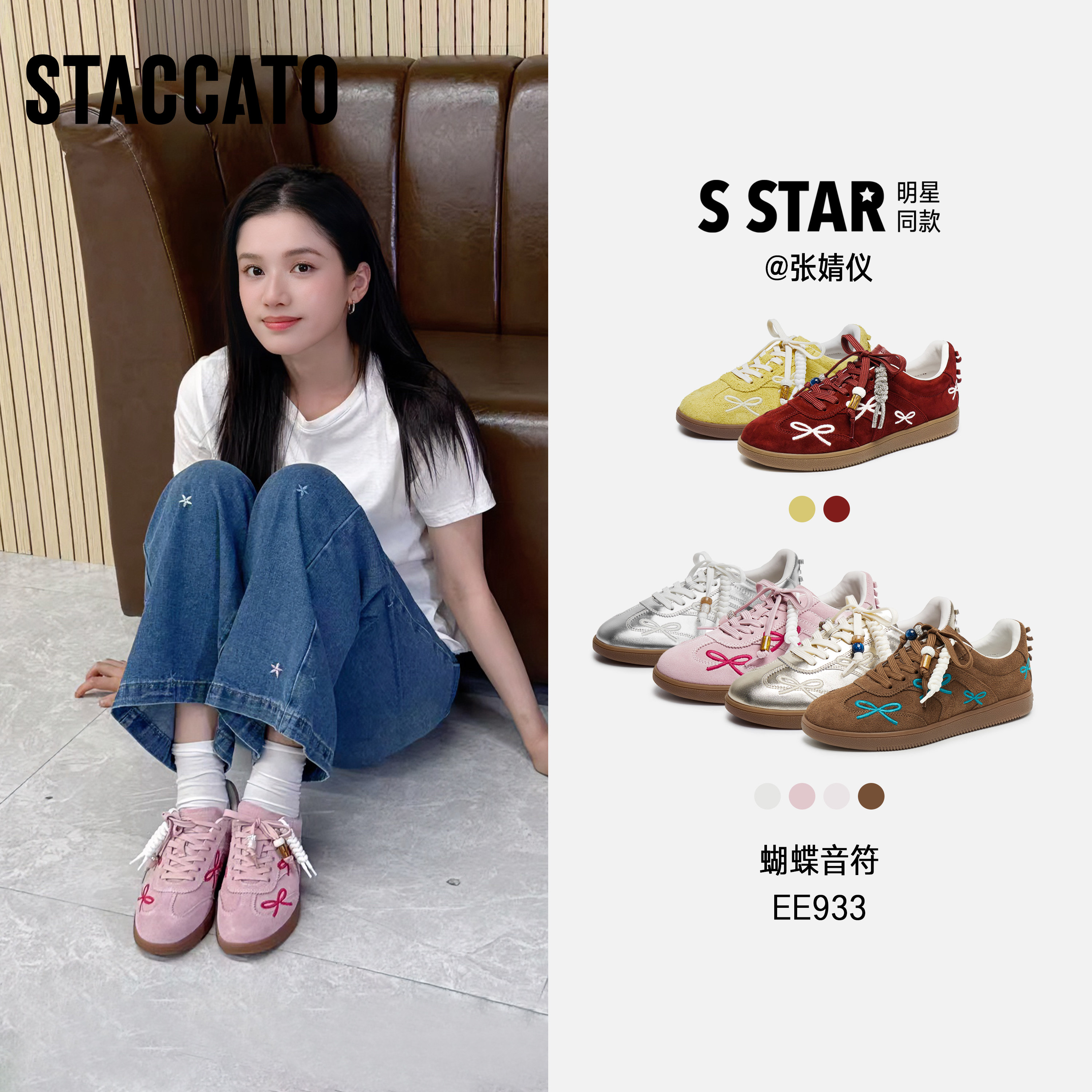 杨幂同款思加图蝴蝶音符德训鞋阿甘鞋银色休闲鞋平底鞋小桃同款
