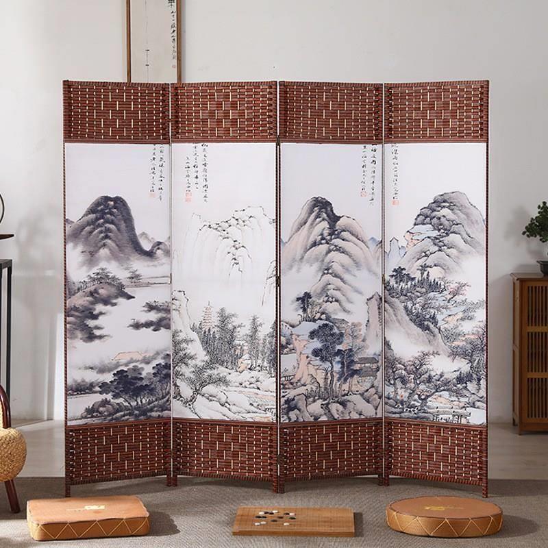 简易客厅家居玄关办公室木框落地屏风酒店隔断现代中国风折叠屏风