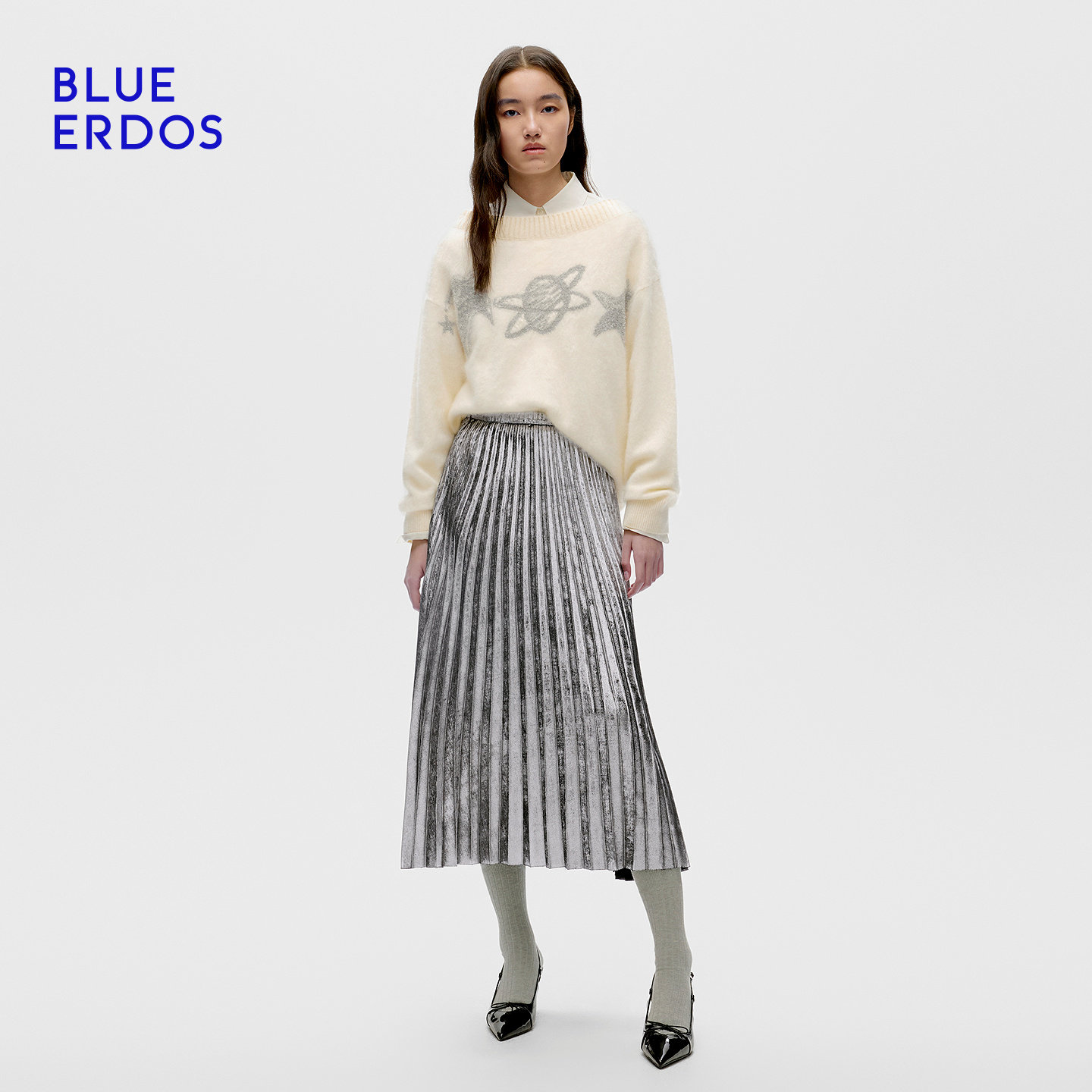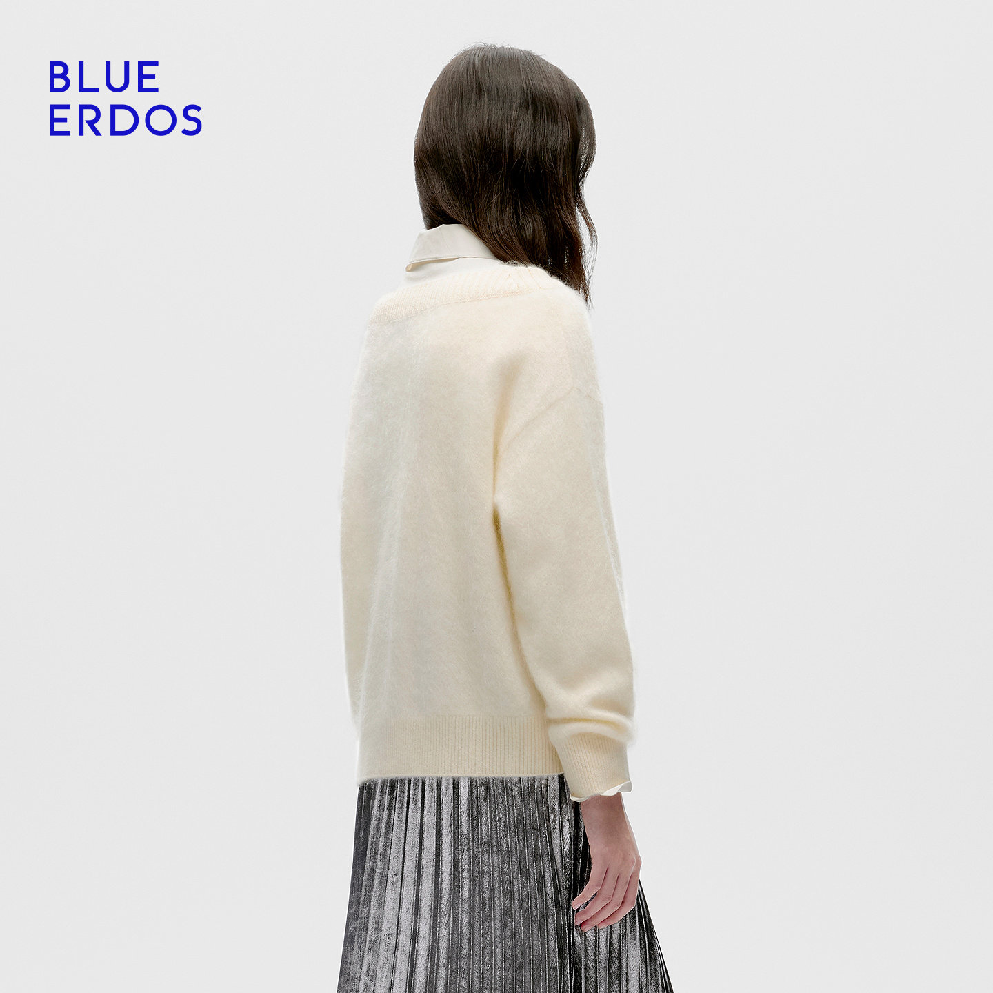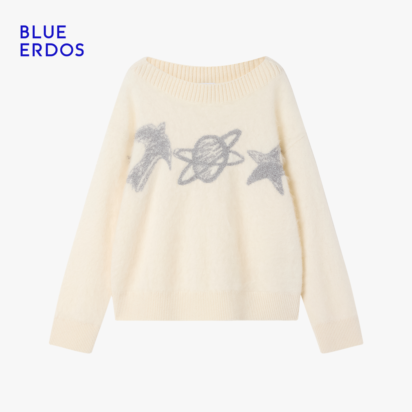 BLUE ERDOS冬季新品质感通勤山羊绒一字领慵懒百搭提花针织衫女