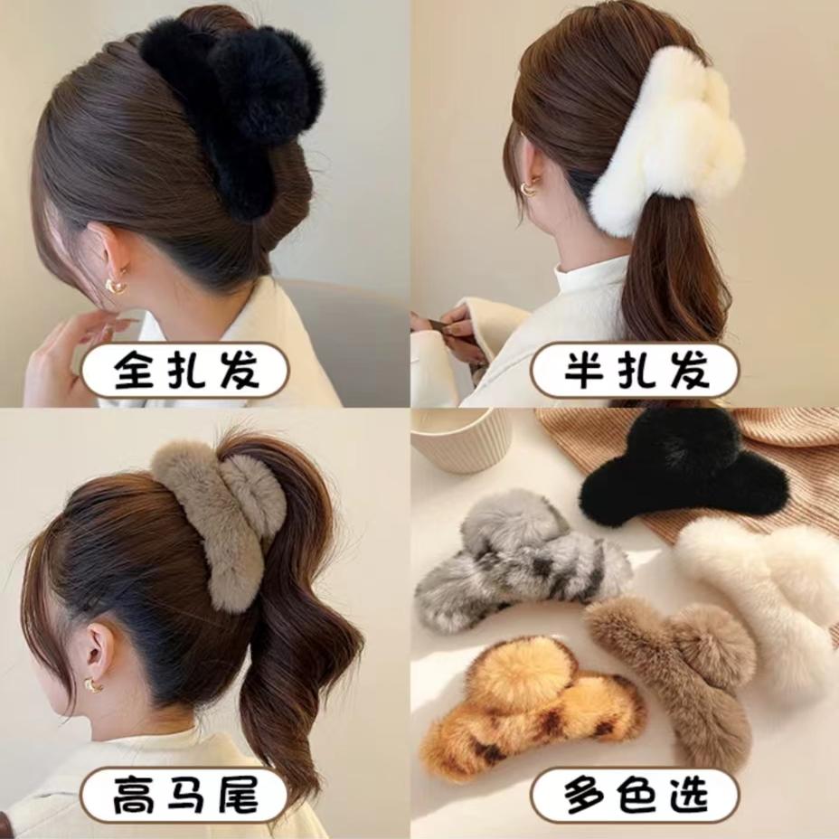 真獭兔毛后脑勺抓夹中号13cm网红可爱毛绒高级感发夹头饰女高马尾