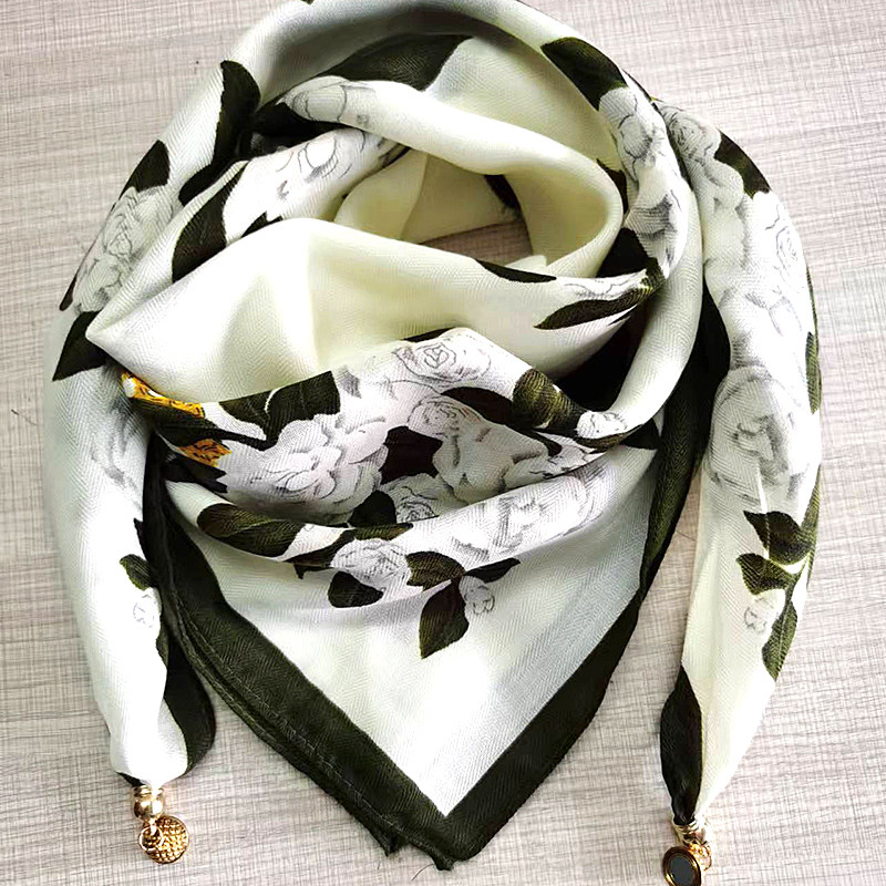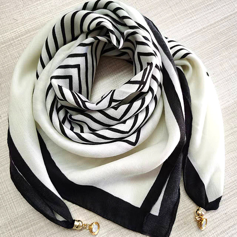 秋冬印花韩版女磁扣棉麻方巾围巾