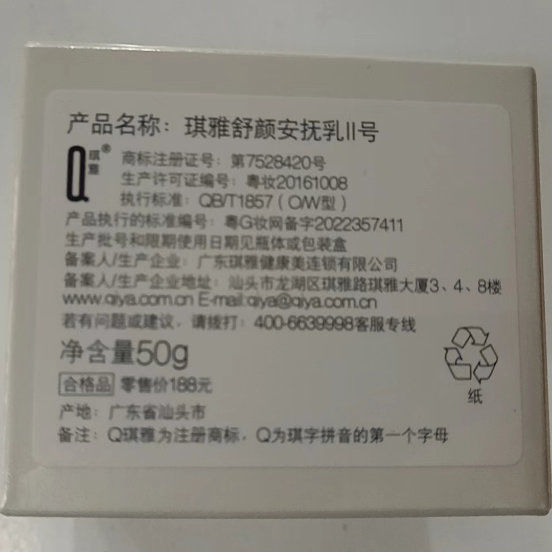 琪雅专柜正品 QIYA 优能舒颜安抚乳II号50g新包装修复保湿补水