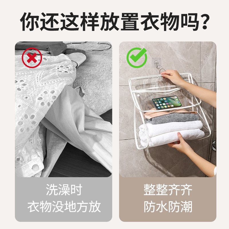 卫生间洗澡放衣服收纳袋子浴室防水挂袋宿舍墙挂式置物袋防水神器