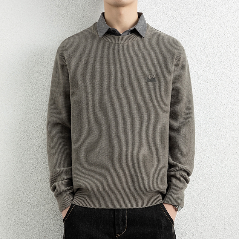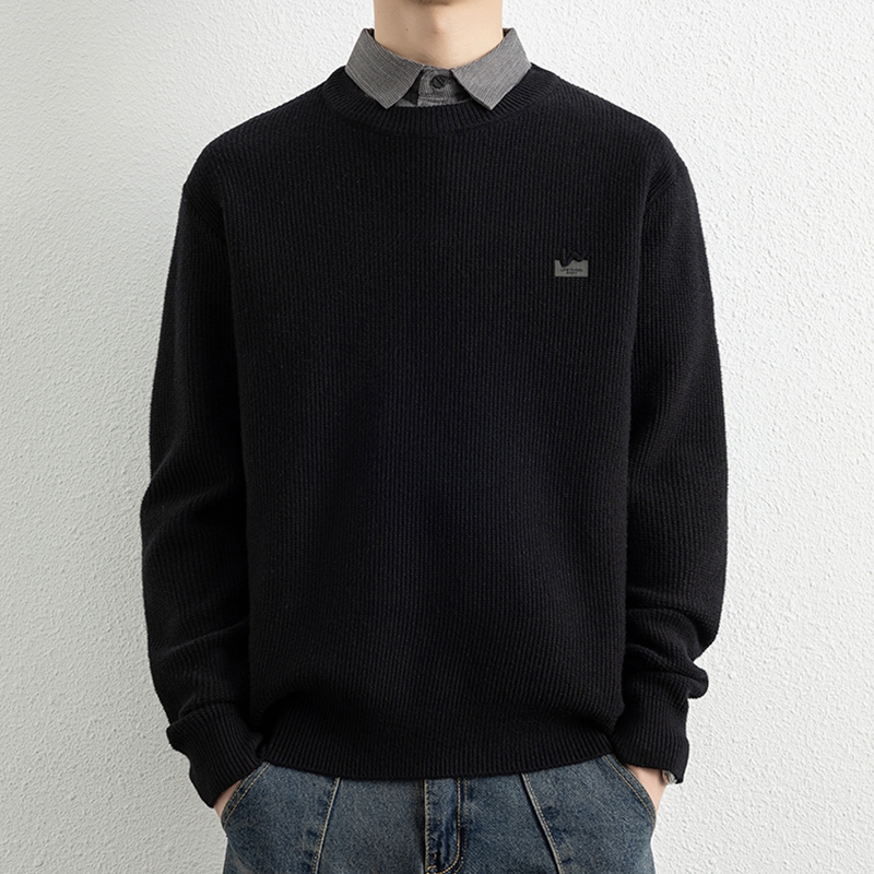 侨迪蒙拉潮牌衬衫领男士针织衫假两件高品质秋冬季毛衣加厚打底衫