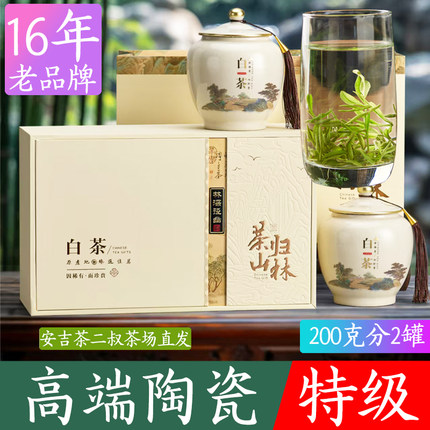 (茶二叔陶瓷款白茶礼盒装)2025年新茶安吉产地正宗250g茶叶特级