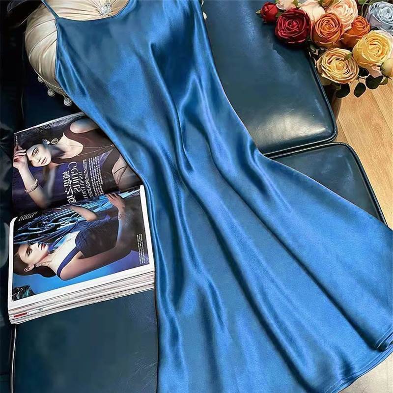 长款修身冰丝流行连衣裙女装背心高级感夏季时尚潮吊带裙气质2025