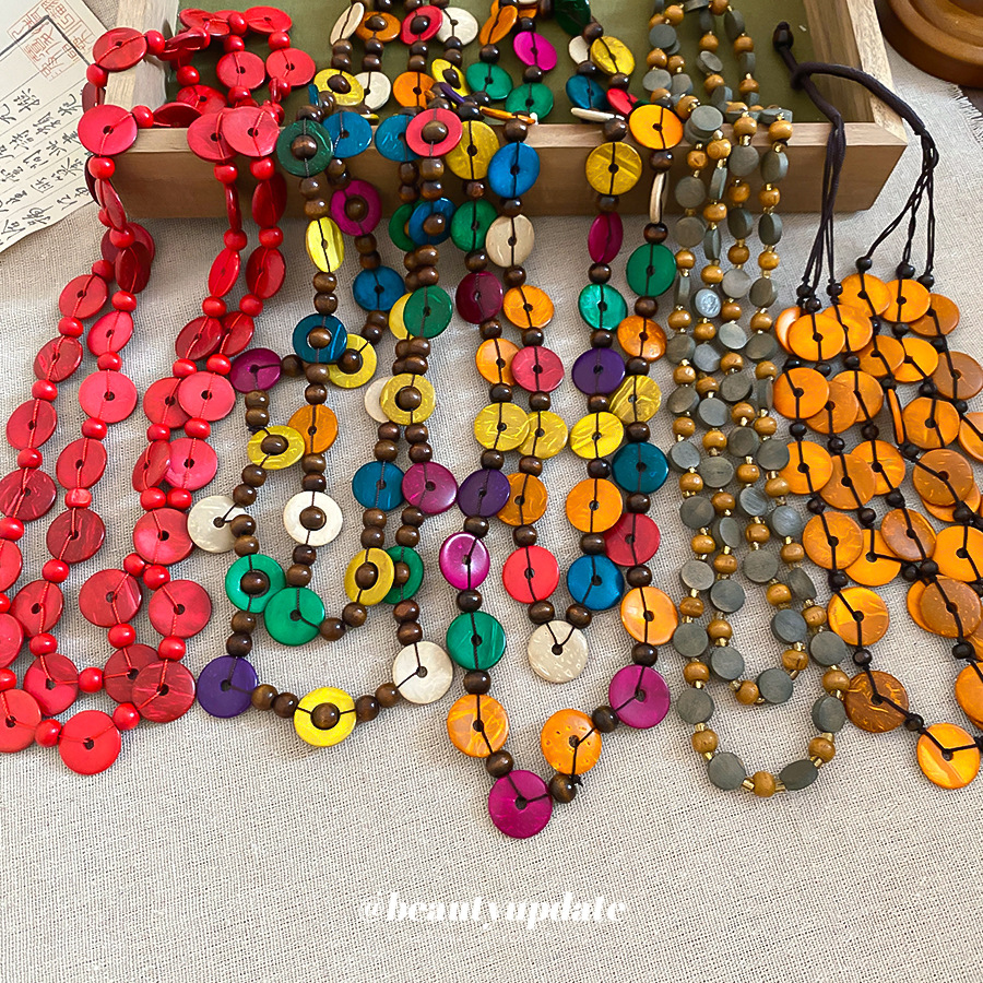 波西米亚木珠圆形水晶串珠叠带项链民族风锁骨链小众设计感毛衣链