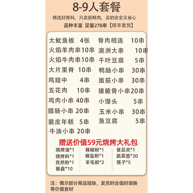 8-9人份烧烤食材套餐新鲜材料羊肉串牛肉串半成品烤串BBQ顺丰南京
