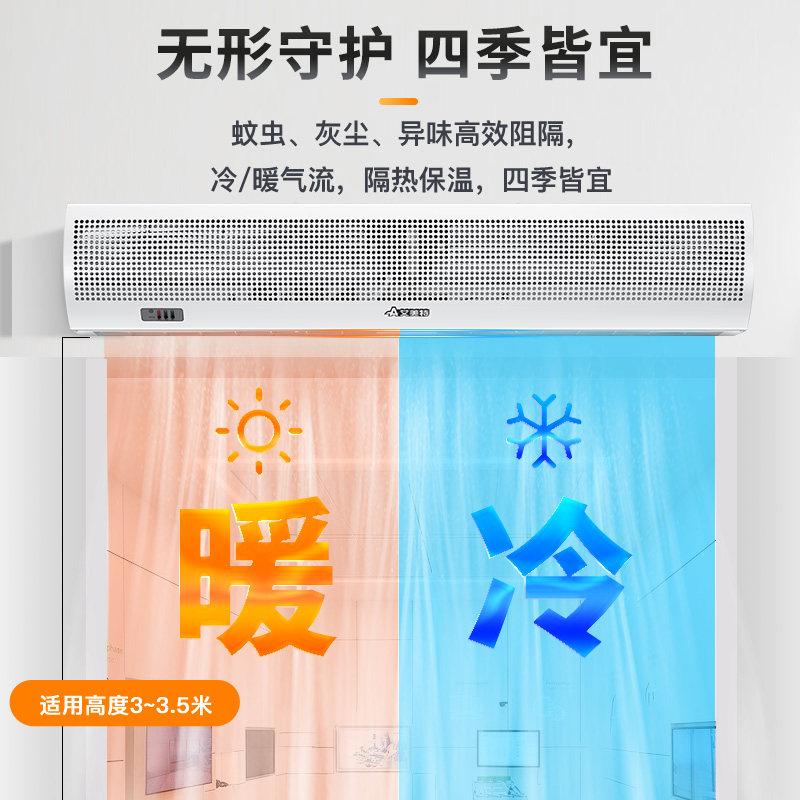 艾美特电热风幕机商用门头专用冷暖两用空气幕门口风帘机380V取暖