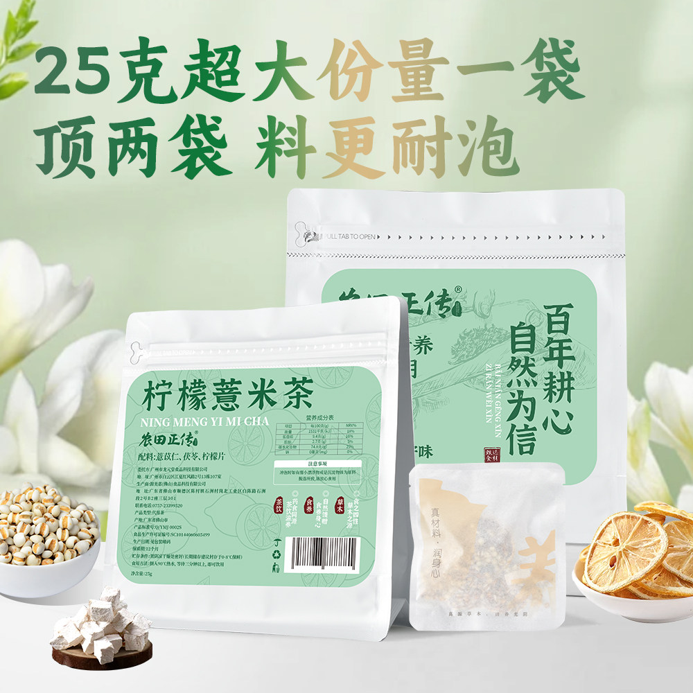 农田正传柠檬薏米茯苓茶包薏苡仁免煮泡水喝的独立小包装养生茶包