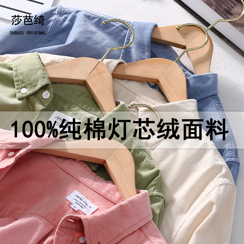 莎芭绮方领长袖潮男灯芯绒衬衫