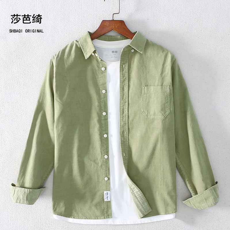 莎芭绮春秋潮男装纯棉灯芯绒长袖衬衫日系复古上衣男士休闲棉衬衣
