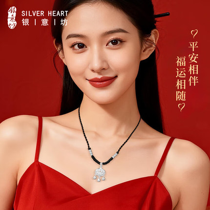 银项链女999纯银长命锁吊坠锁骨链高级感轻奢小众生日女神节礼物