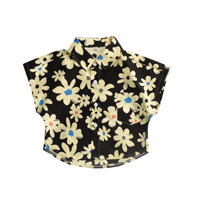 男童夏装短袖花衬衫雏菊图案