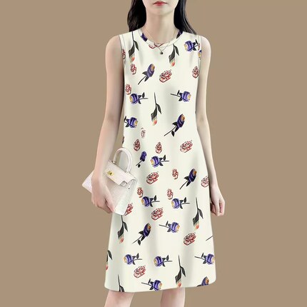 无袖背心裙百搭显瘦夏季高档女吊带2025内搭印花宽松连衣裙遮肚女