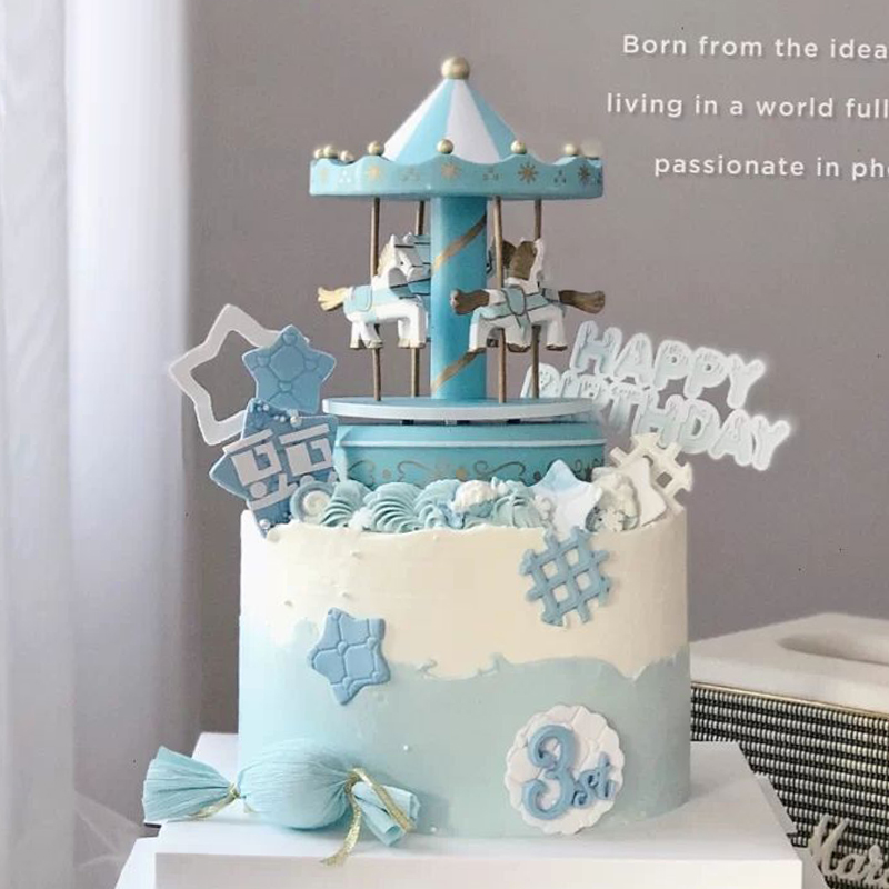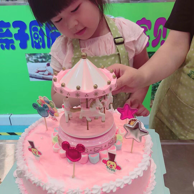 带音乐旋转木马蛋糕摆件 音乐盒儿童生日装饰配件diy创意派对