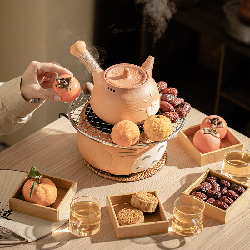 网红龙猫电陶炉煮茶壶卡通围炉煮茶器套装可干烧可明火烤茶壶家用