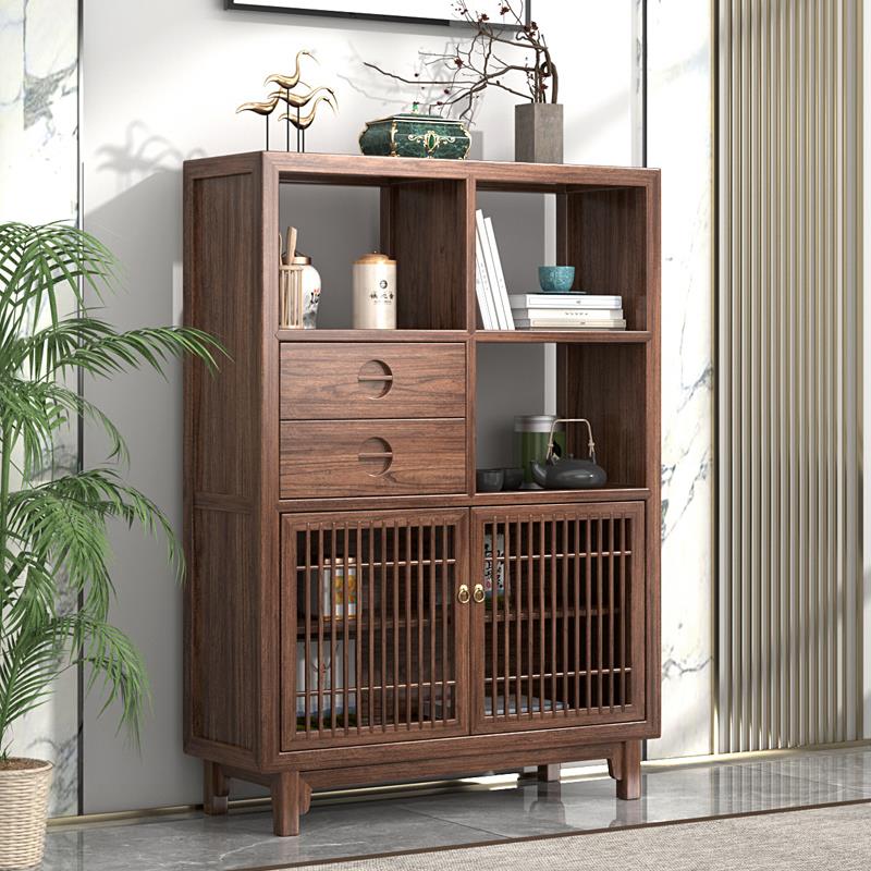 老榆木实木博古架茶室茶叶茶具架多宝阁胡桃新中式餐柜收纳柜
