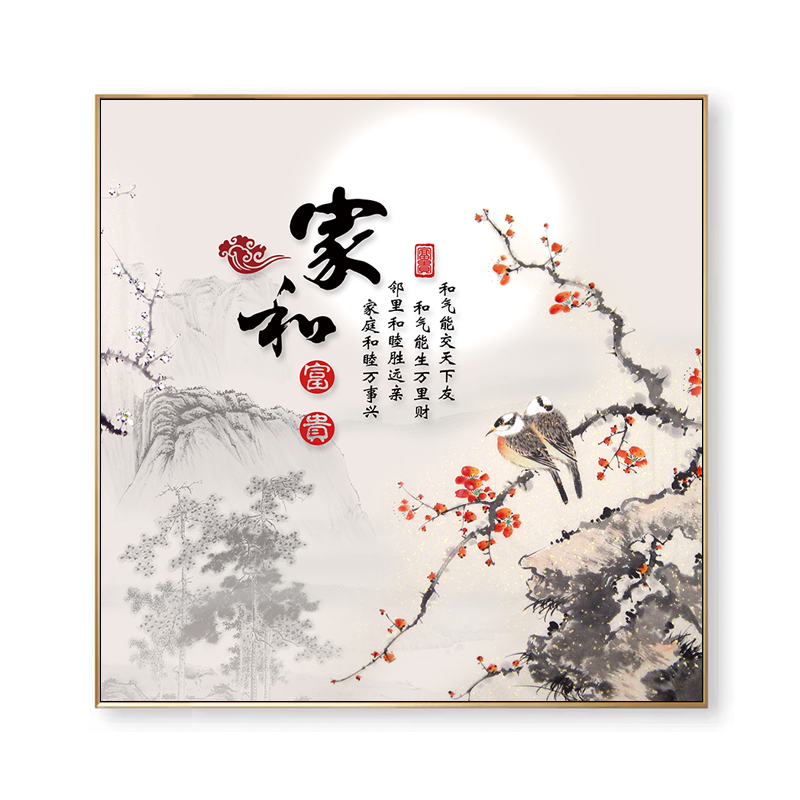 禅意书法家和万事兴花鸟梅花植物国画书房油画布方形画芯喷绘定制
