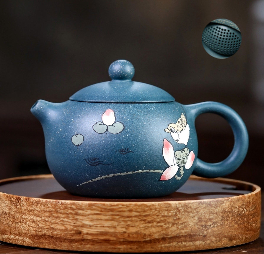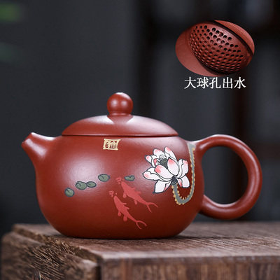 宜兴紫砂壶手工原矿段泥釉彩西施大球孔出水茶壶茶具