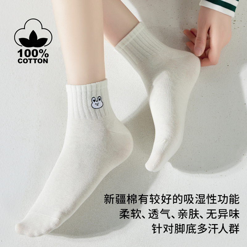 都市丽人袜子女春秋纯棉白色卡通可爱少女刺绣中筒袜防臭抗菌短袜