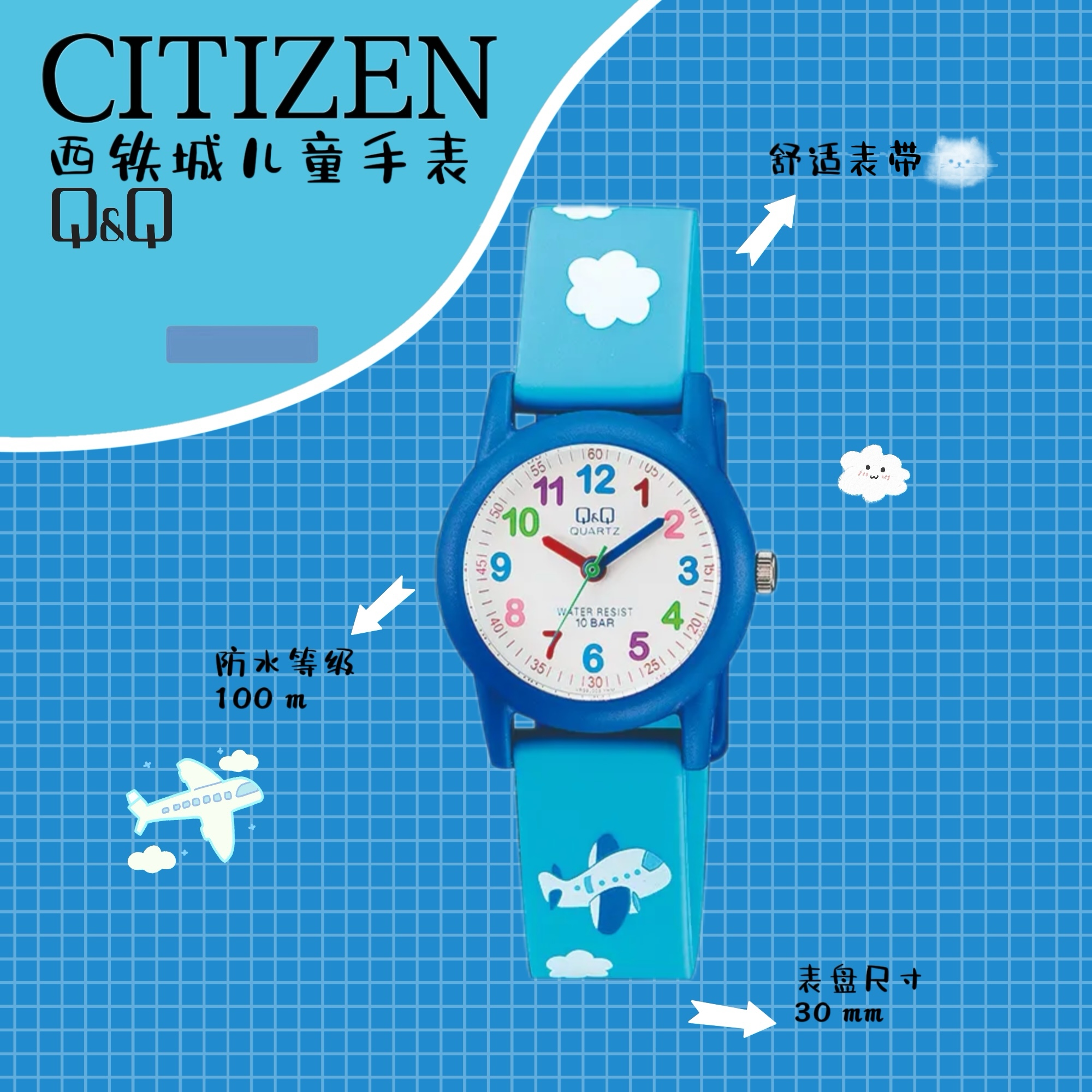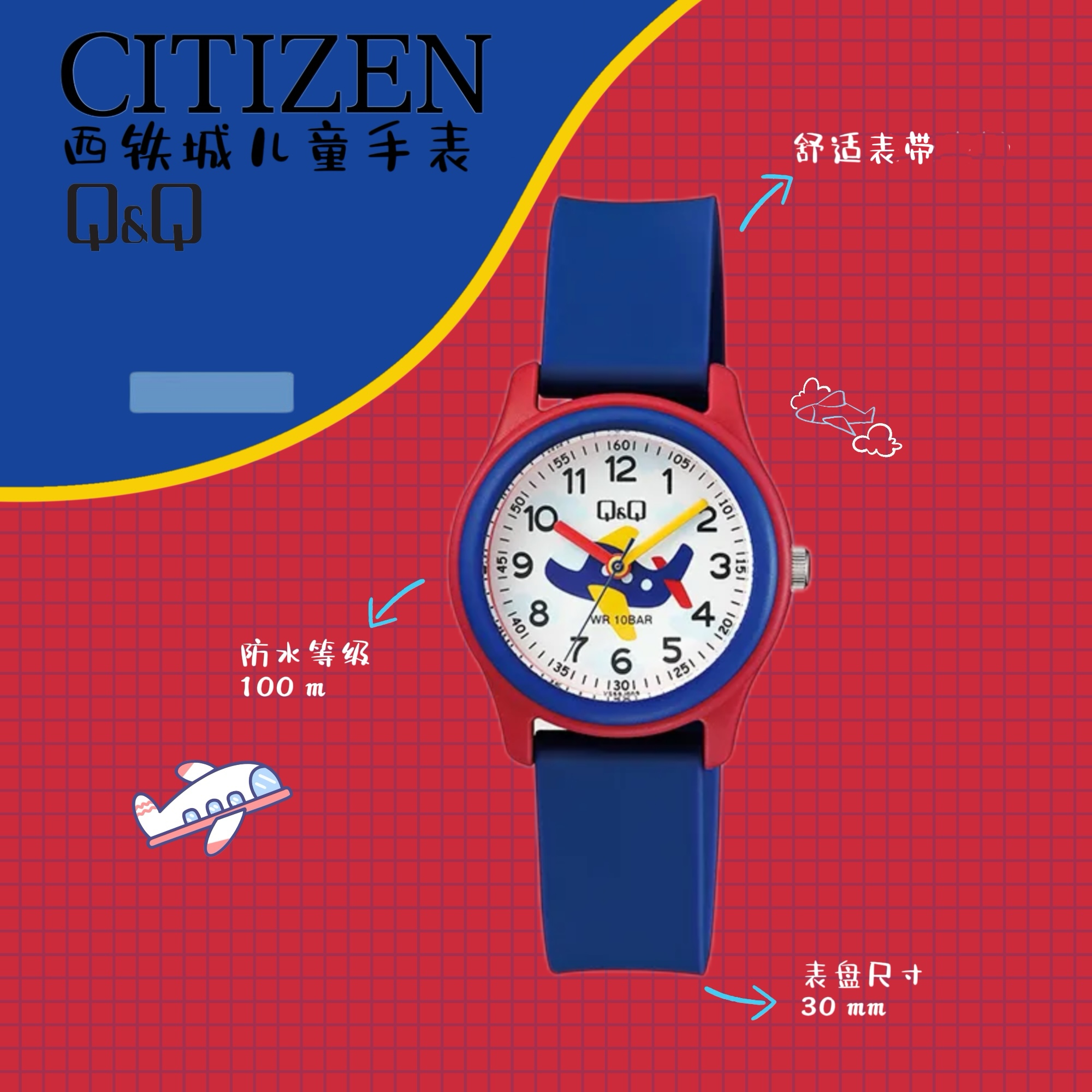 西铁城Q&Q儿童手表男最爱飞机模型只看时间儿童电子静音石英手表