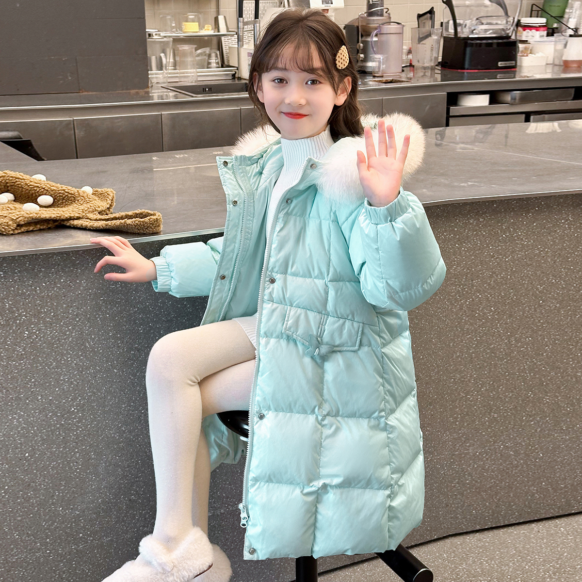 女童棉衣外套加厚中长款秋冬装新款中大童洋气网红棉袄保暖棉服