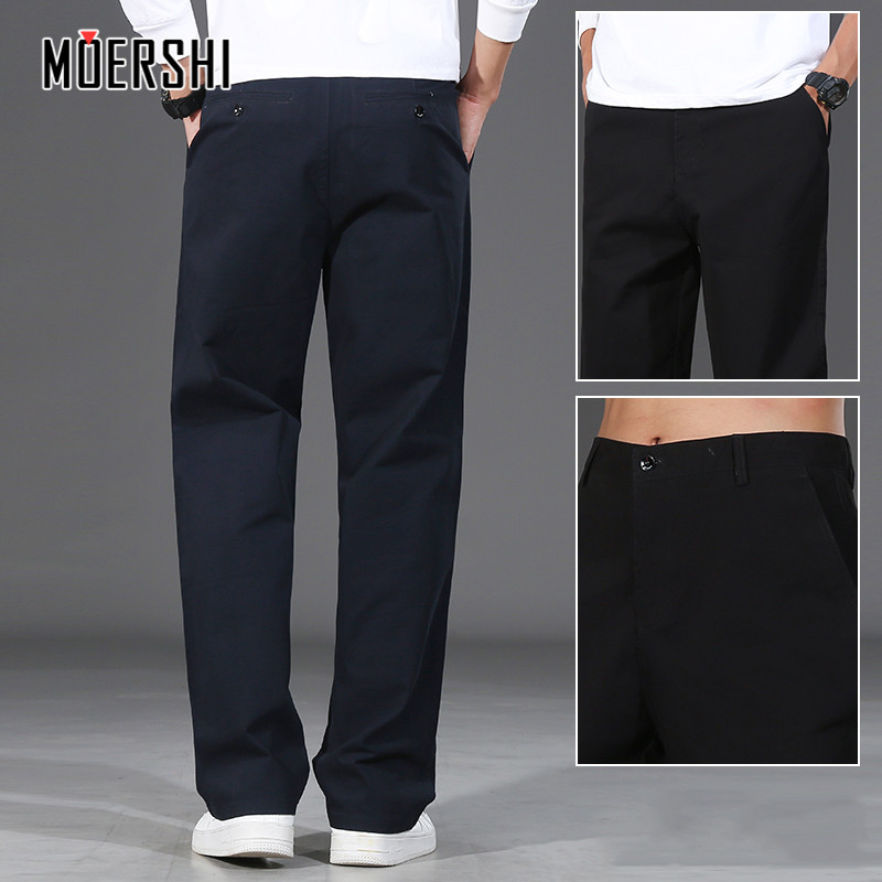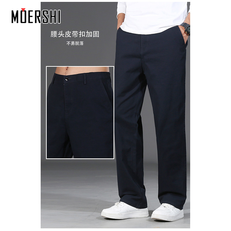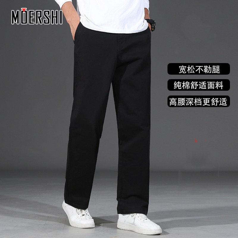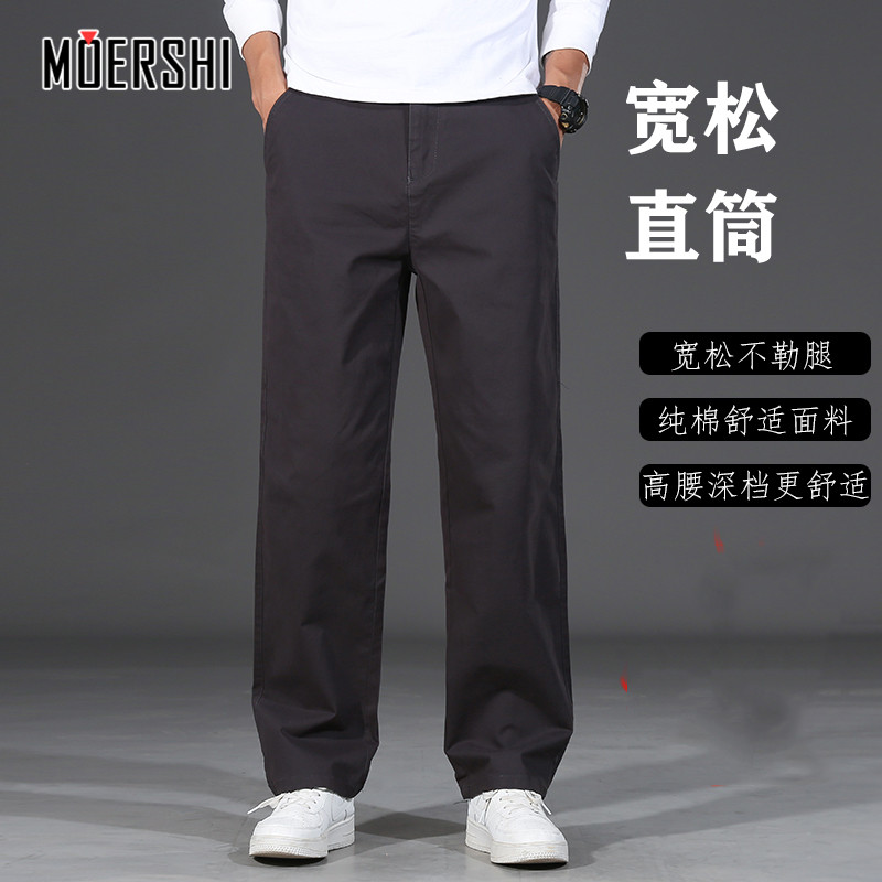 MOERSHI纯棉宽松直筒休闲裤男春秋季爸爸中年大码时尚西裤长裤子