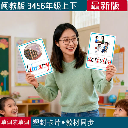 新闽教版小学英语四年级上下册老师教学单词闪卡片四线三格教具