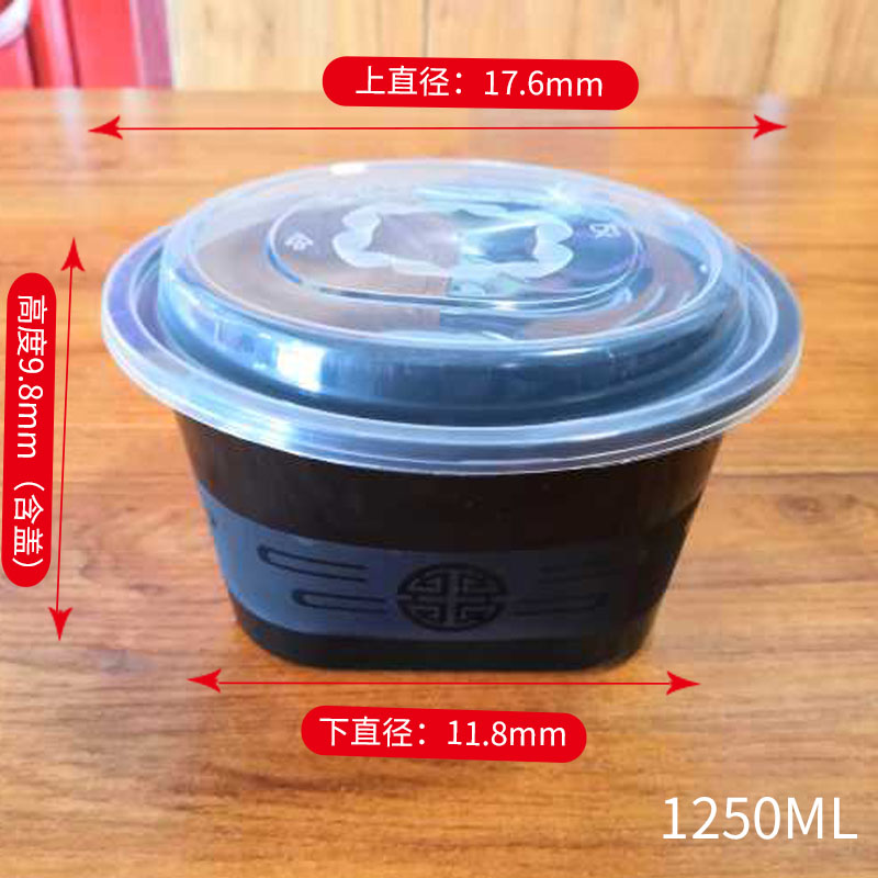 正方形1500ML一次性餐盒麻辣烫香锅米线汤碗黑色外卖打包快餐盒