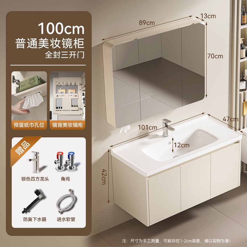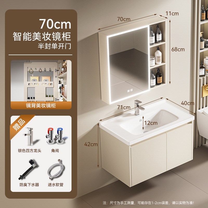 小户型40cm简约奶油风蜂窝铝浴室柜组合卫生间陶瓷一体洗手洗脸盆