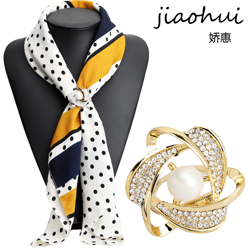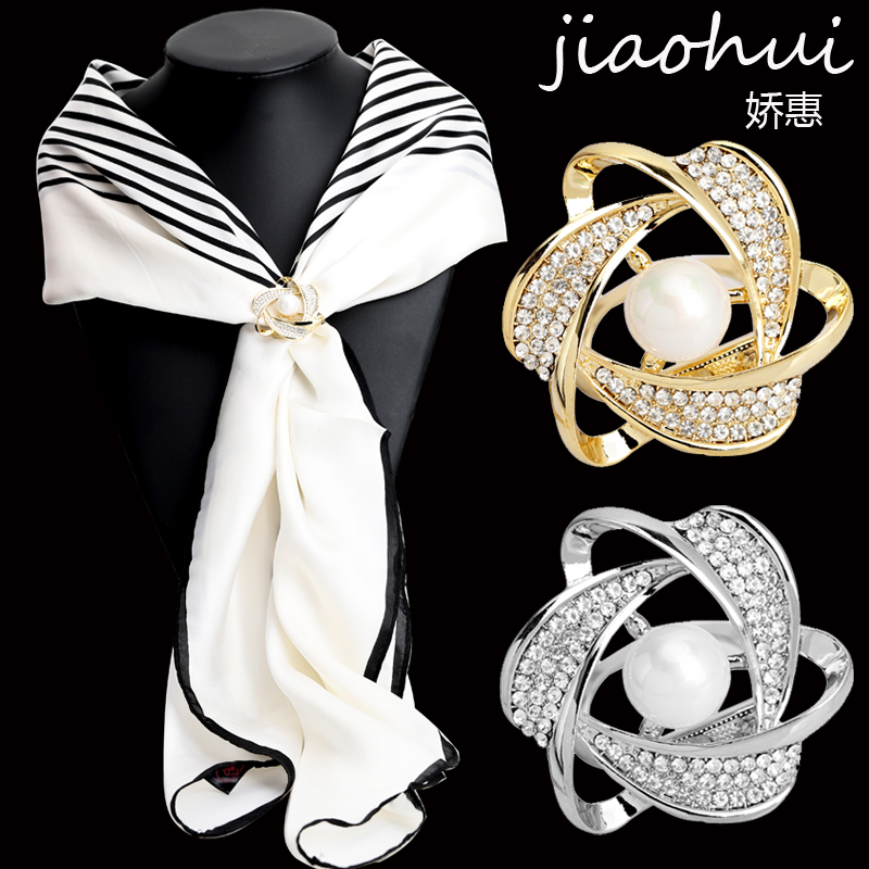 韩版高档三环丝巾扣时尚百搭t恤衣角打结扣围巾扣两用夹胸针配饰