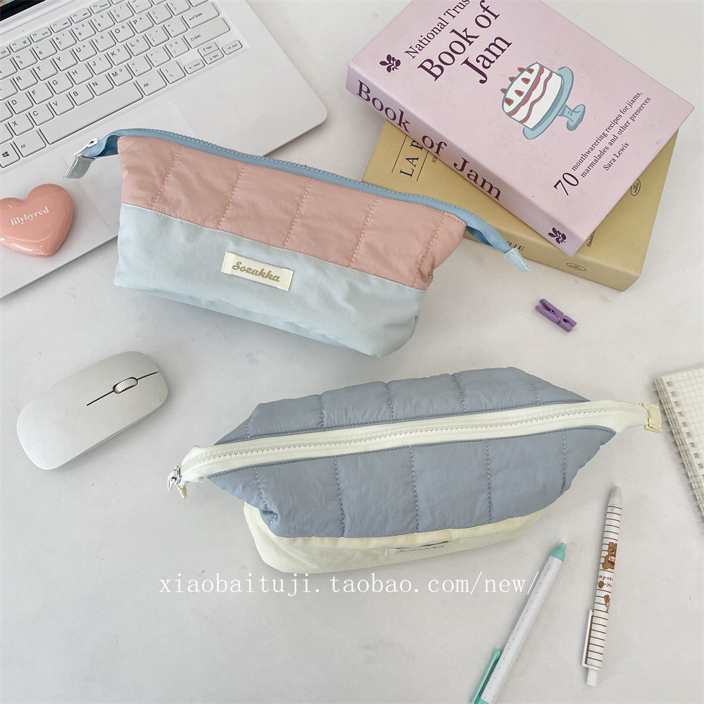 小白兔几绗缝高颜值拼接撞色大容量学生文具袋便携笔袋上课铅笔盒