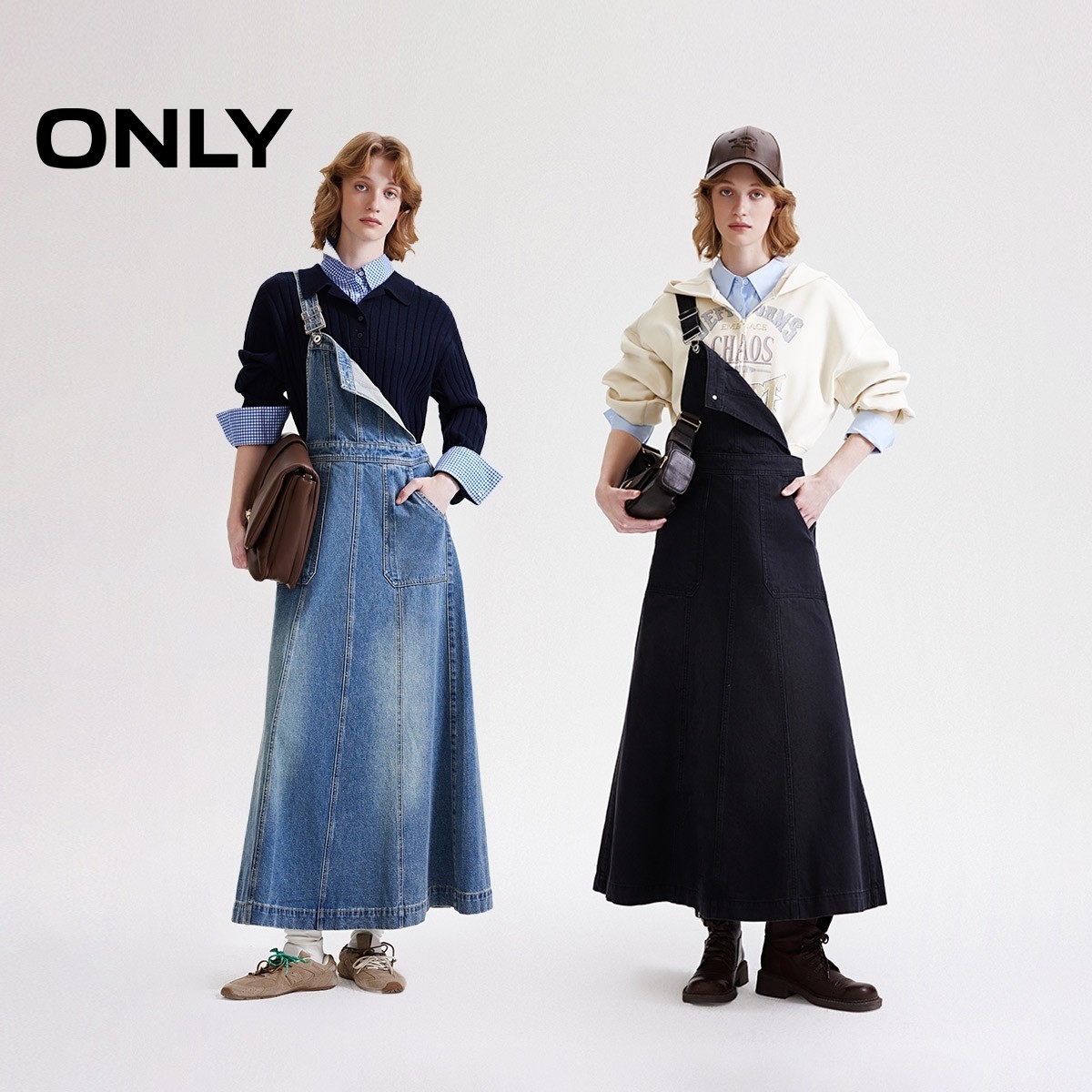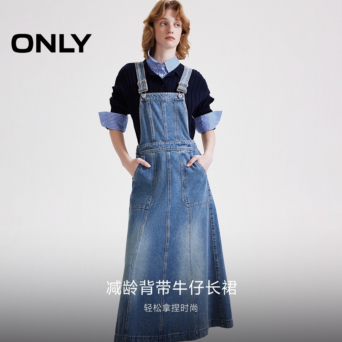 ONLY2025冬季新款复古做旧可调节背带裙长裙连衣裙女|125142009