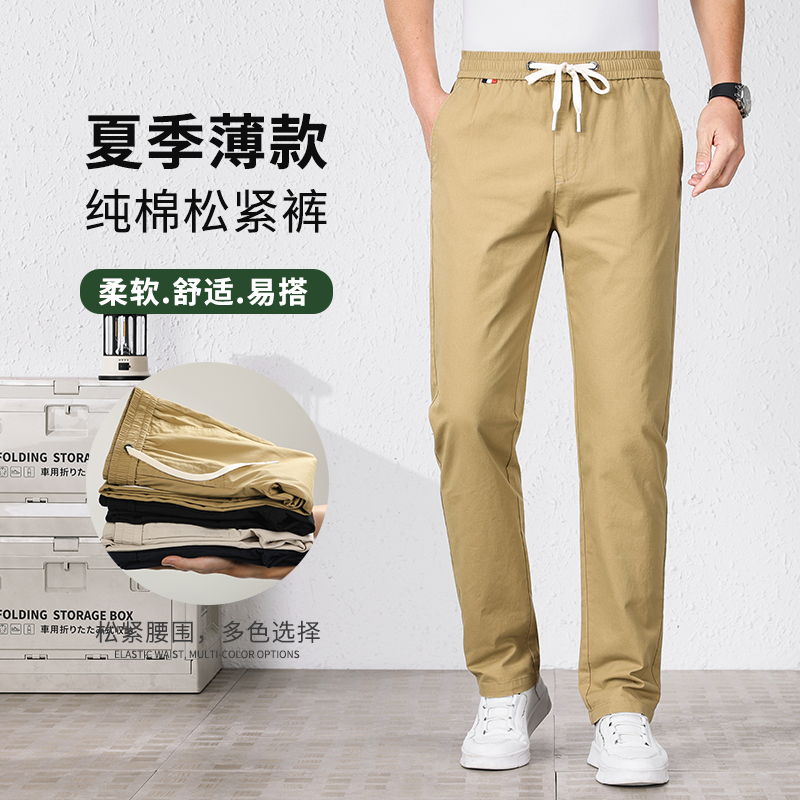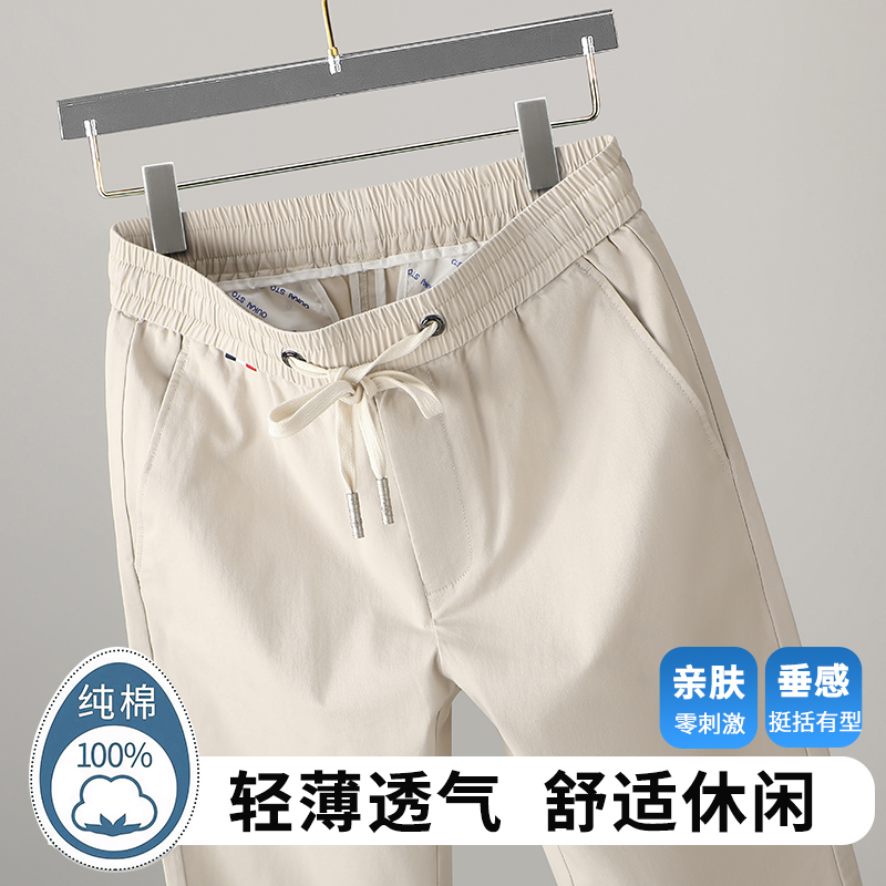 花花公子纯棉男士休闲裤2025春秋新款松紧腰长裤子直筒宽松运动裤