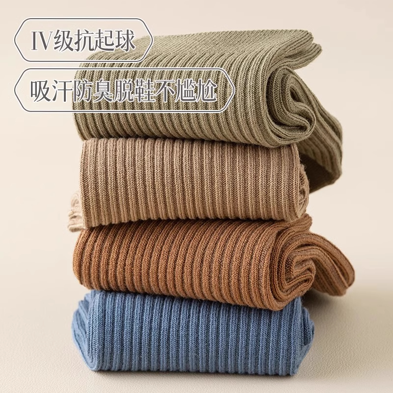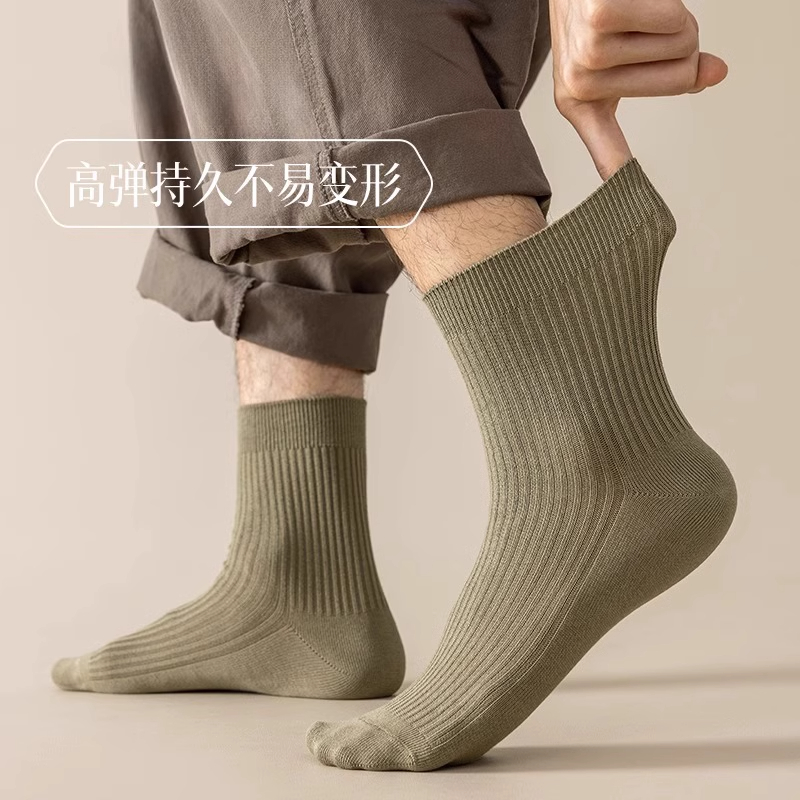 诸暨袜子男士春秋款防臭中筒袜吸汗透气纯色棉袜青少年运动长筒袜