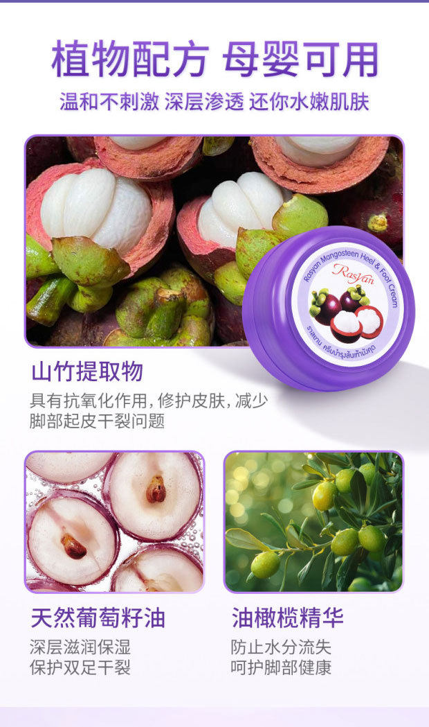泰国进口RASYAN山竹护脚霜3盒装皴裂膏手足护理保湿润防裂膏13g*3
