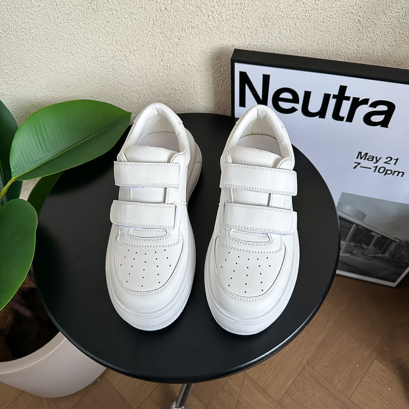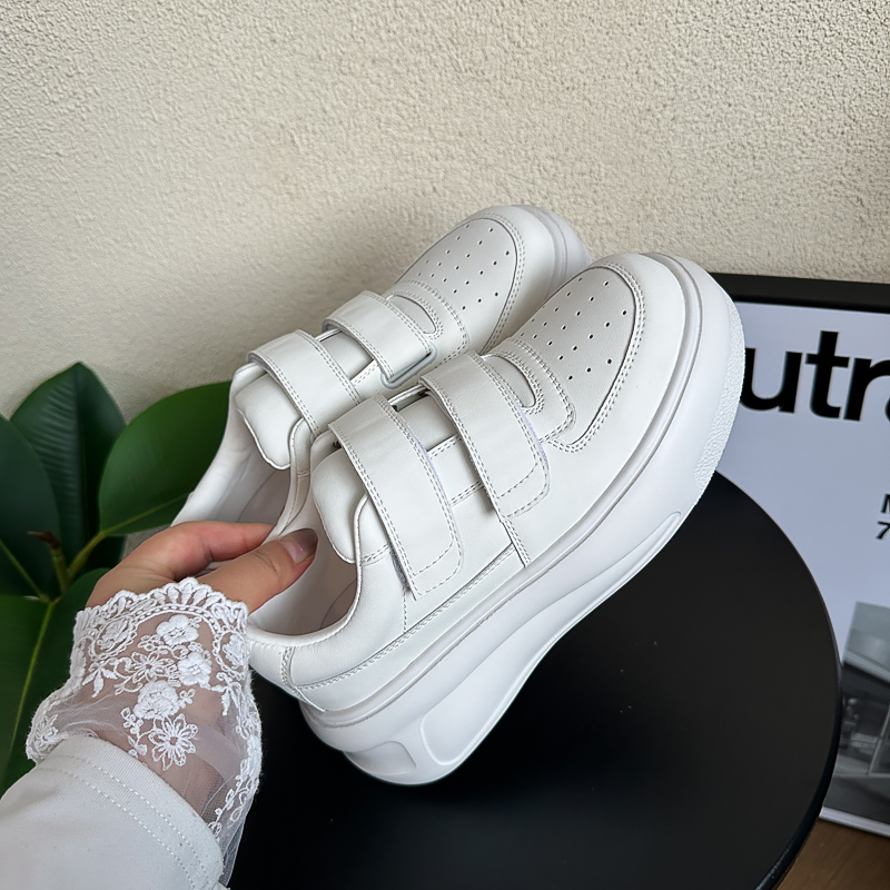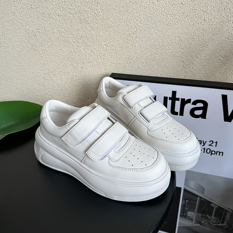 小羊轻奢厚底板鞋女2025秋季新款真皮百搭休闲运动增高魔术贴白鞋