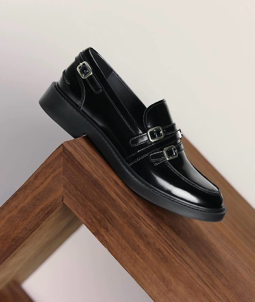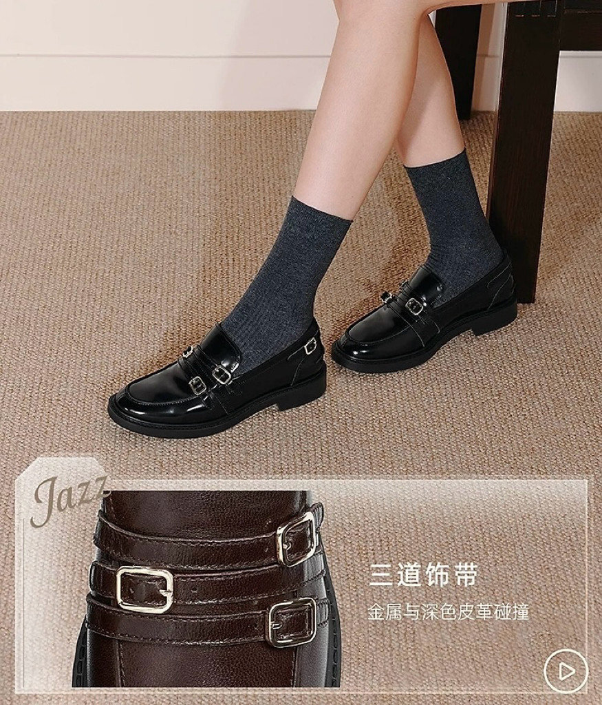 商场同款2025秋黑胶夜曲英伦风乐福鞋一脚蹬黑色小皮鞋女EFI07CA5