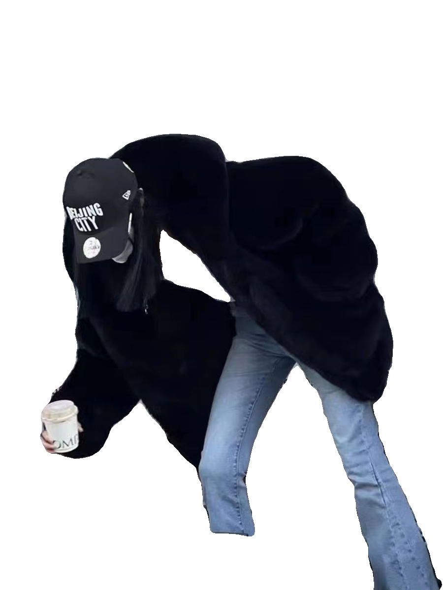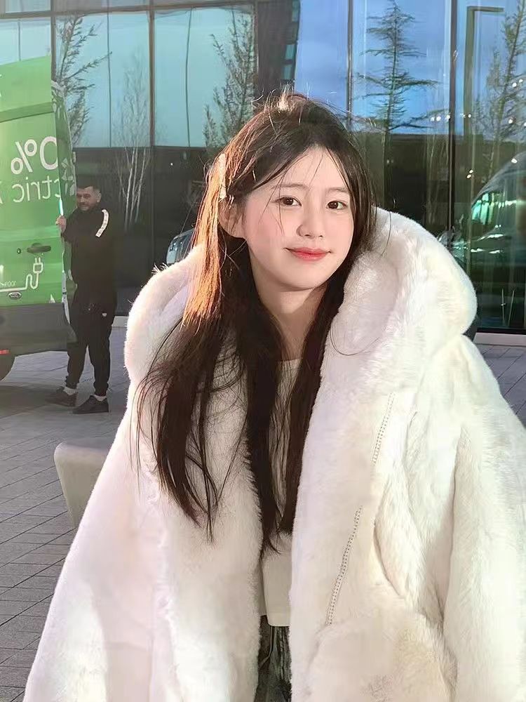 獭兔毛羊羔毛连帽仿皮草外套女中长款2025秋冬款宽松加厚毛绒大衣