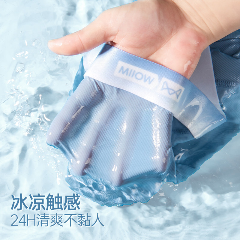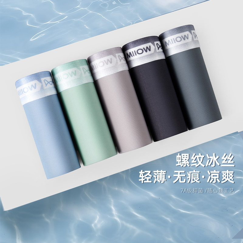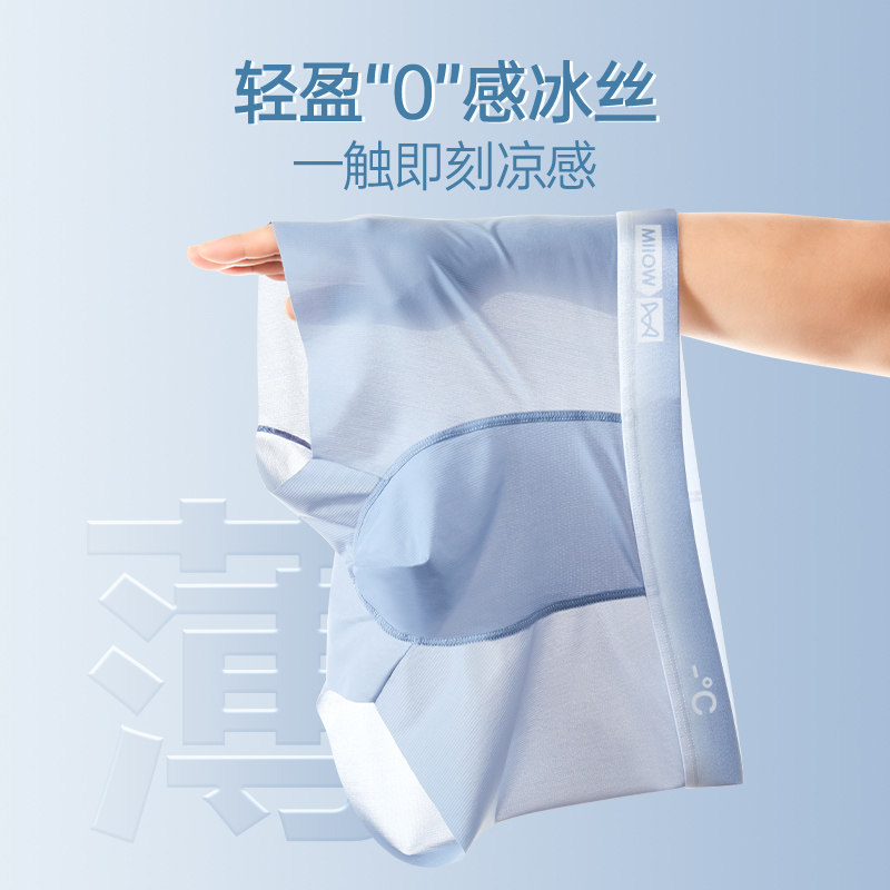 猫人无痕冰丝男士内裤男款四角夏季凉感吸汗透气抗菌档平角短裤