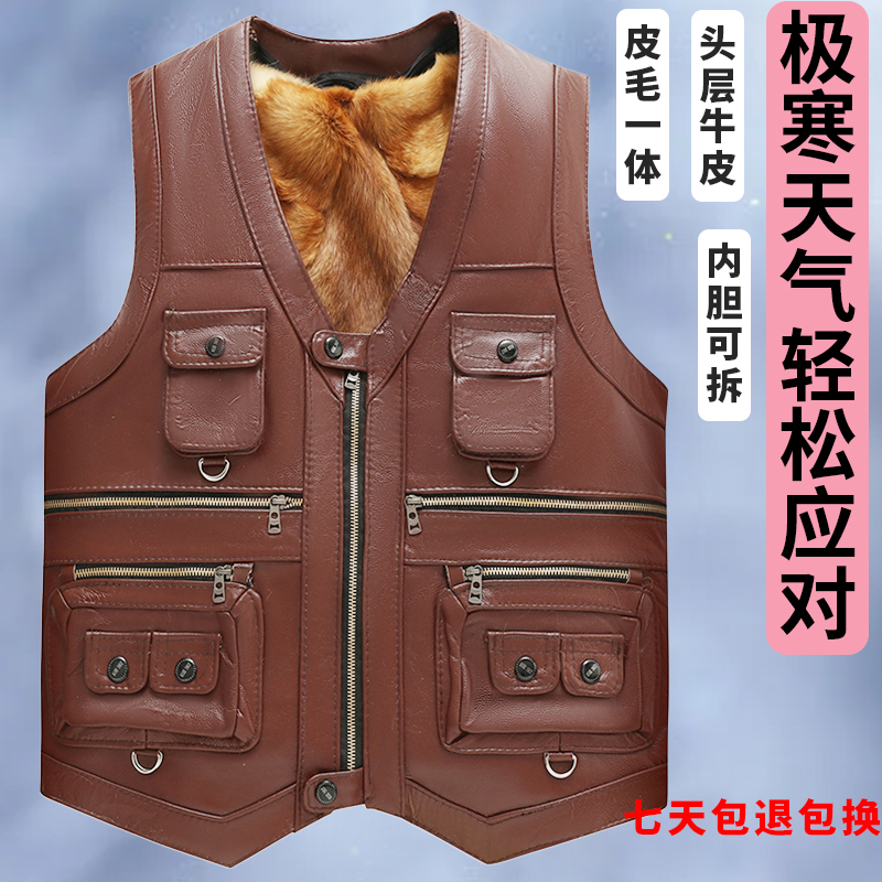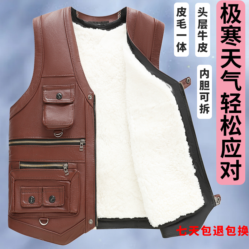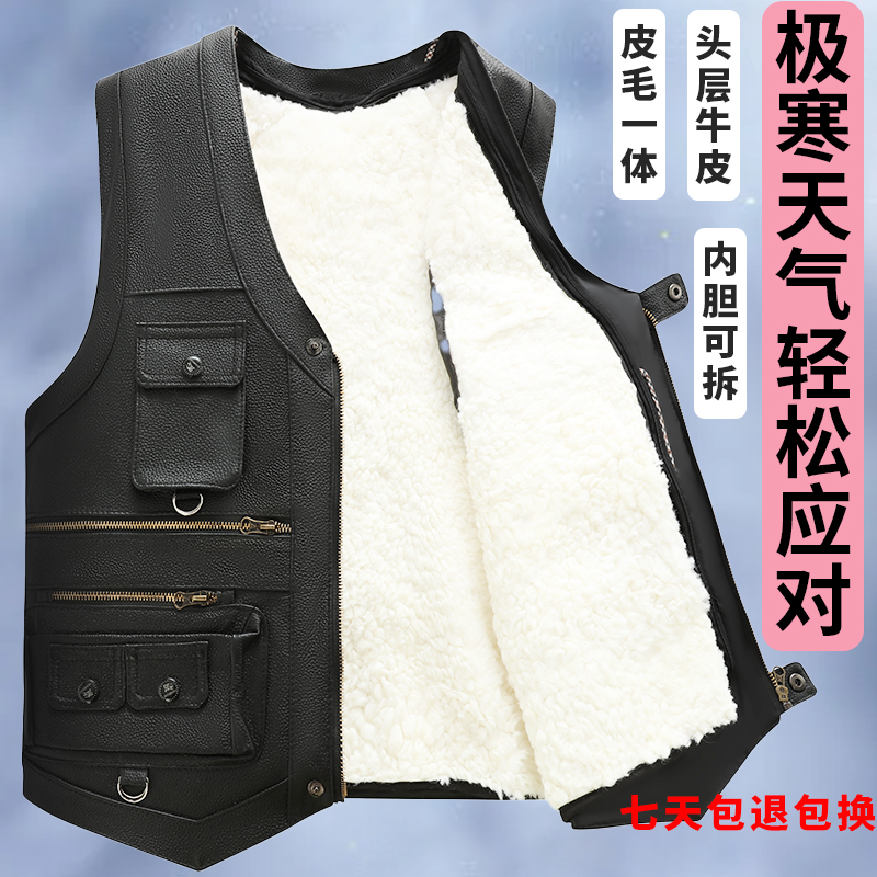秋冬真皮马甲男款牛皮马甲皮毛一体加厚黑色羊皮皮草皮马夹厚坎肩