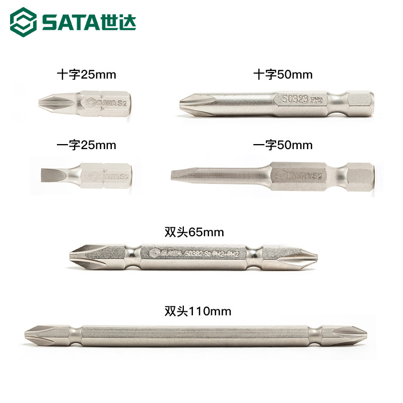 世达6.3mm旋具头5件套】一字十字两用批头双头电动梅花平口起子头