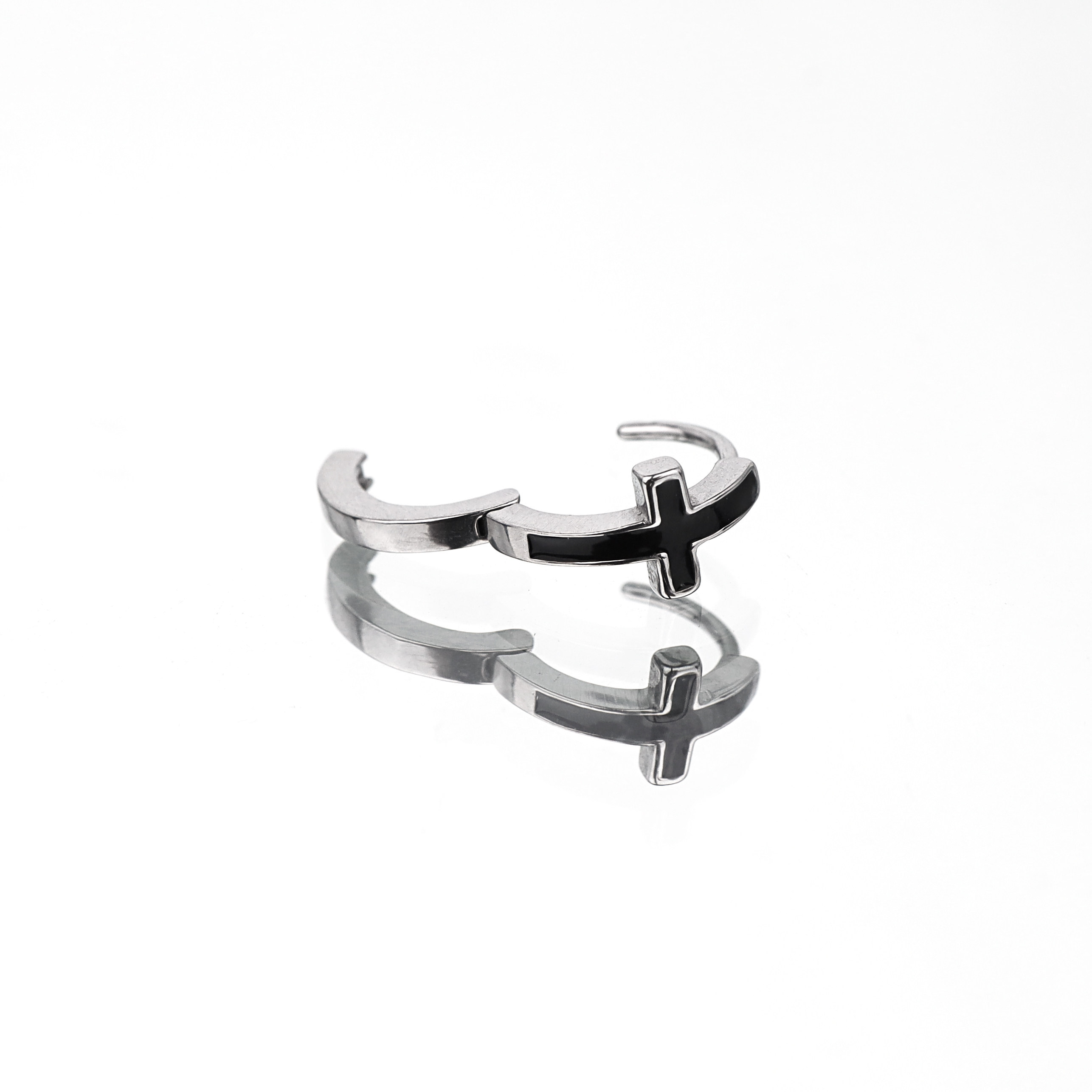 Shinma 钛钢滴油十字架一体设计耳环耳钉耳扣欧美复古亚比饰品