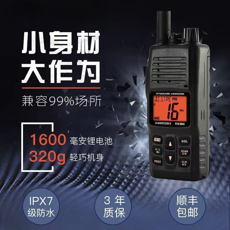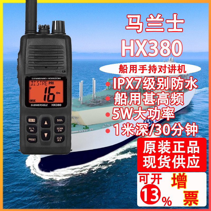 马兰士HX380 国际海事对讲机 船用VHF大功率港口码头防水漂浮手台