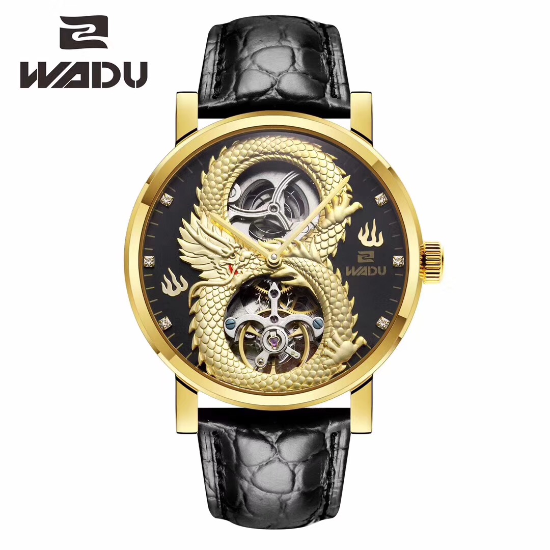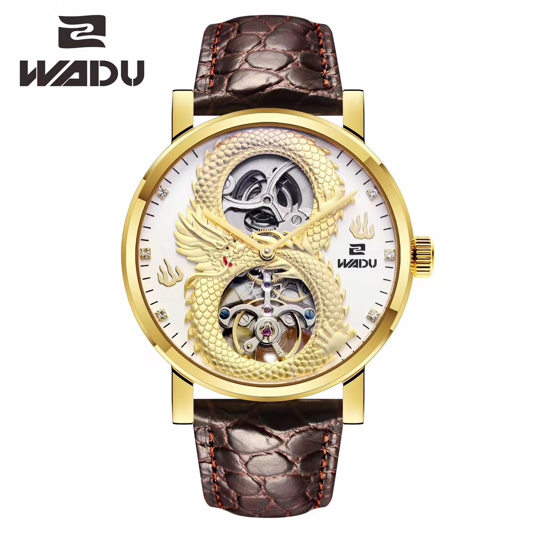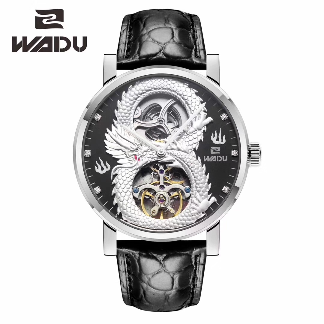 握度手表飞龙手表中国龙陀飞轮男装机械腕表防水皮带商务男表