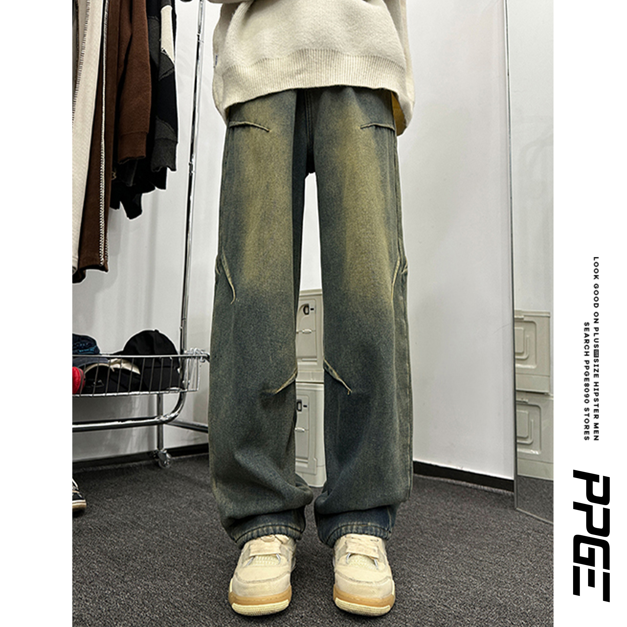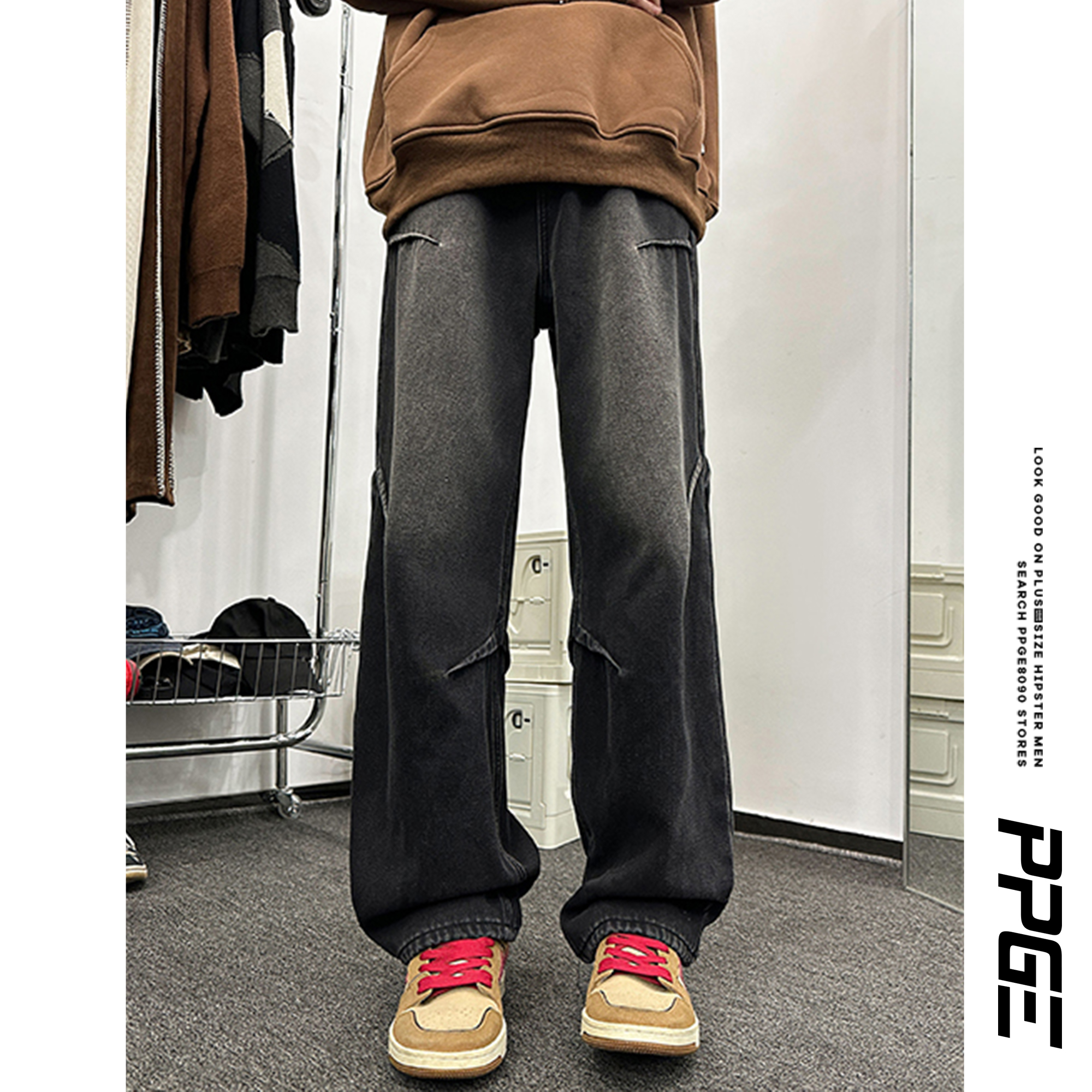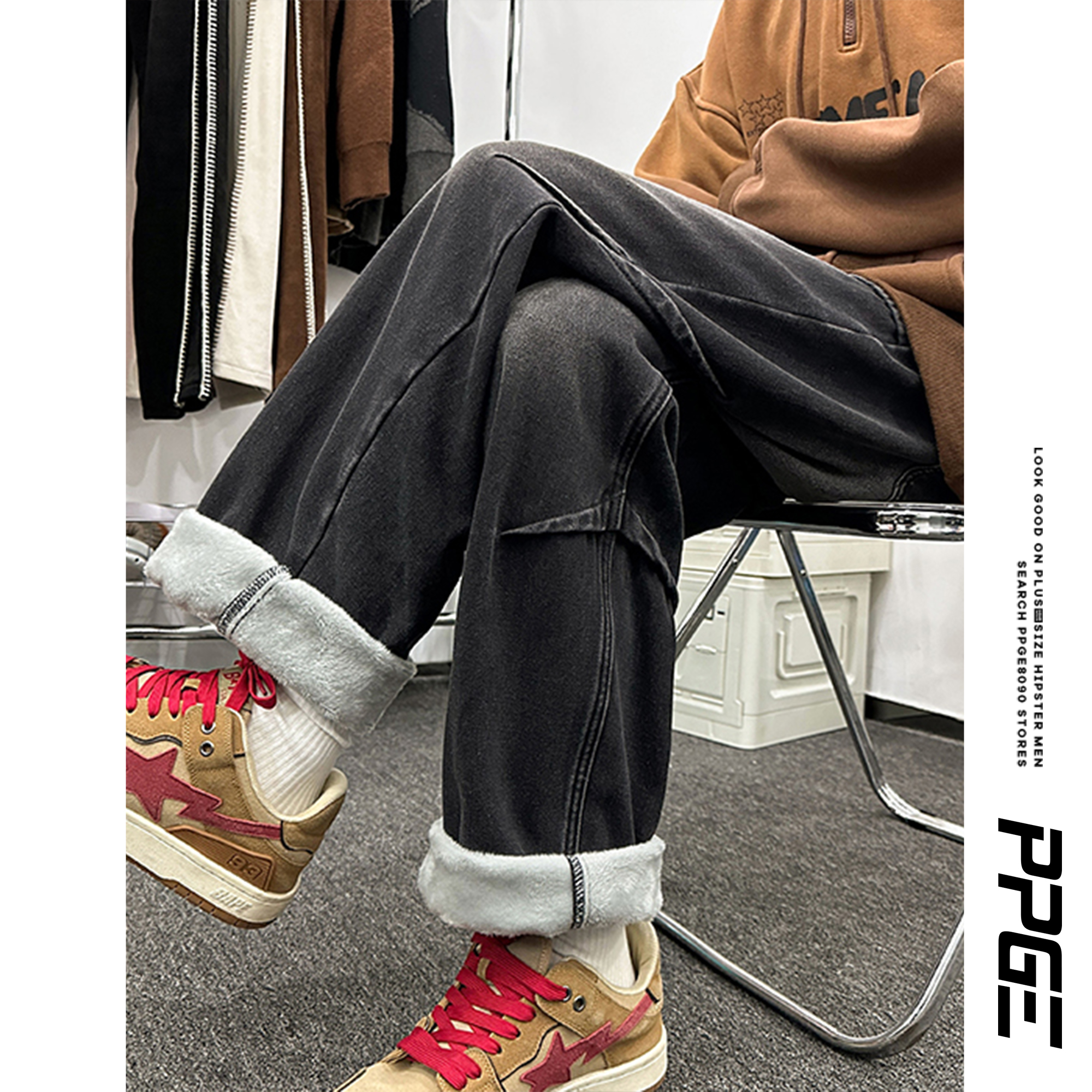 胖胖哥复古大码加绒加厚牛仔裤冬季男款潮流宽松休闲百搭纯色长裤
