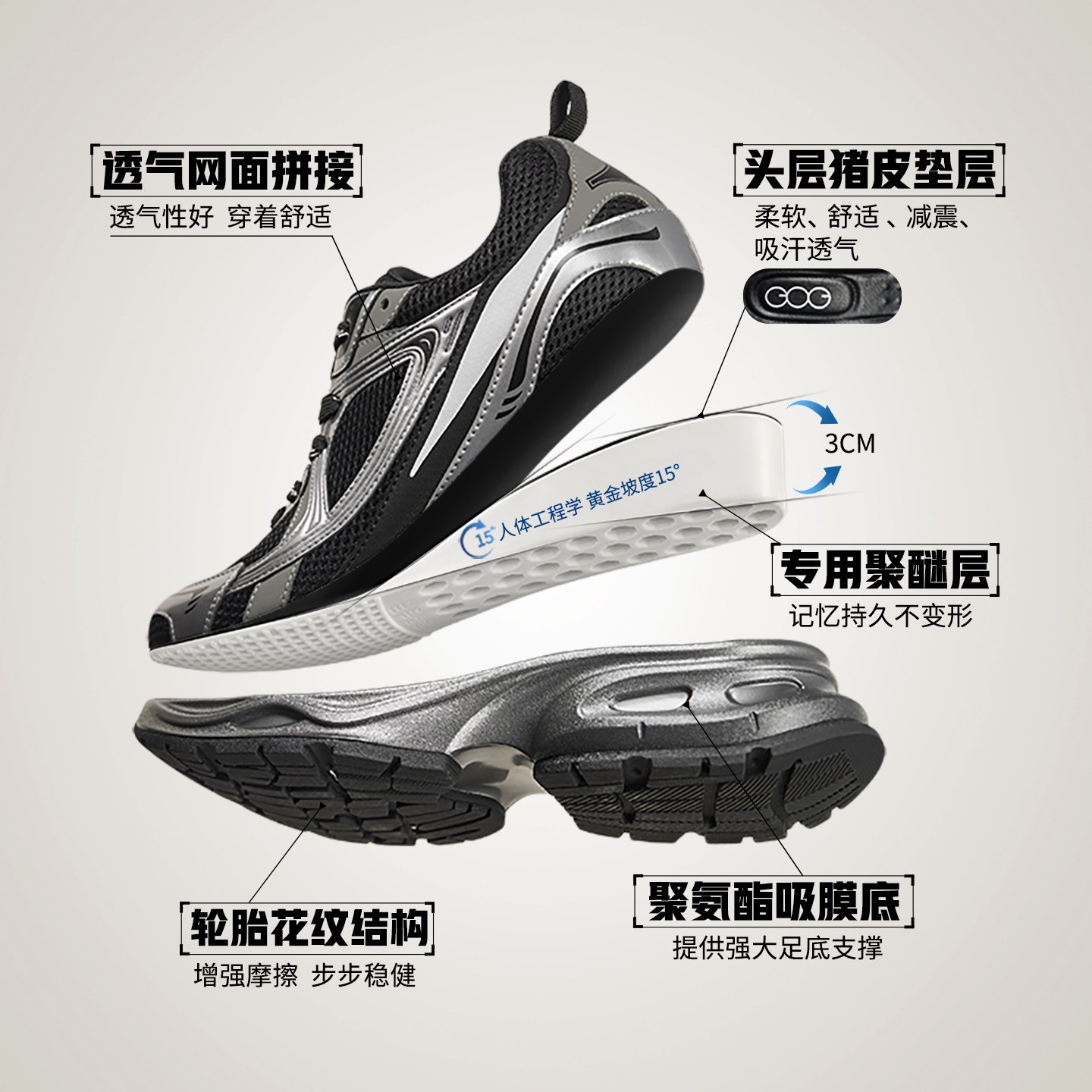 高哥增高休闲鞋内增高厚底老爹鞋
