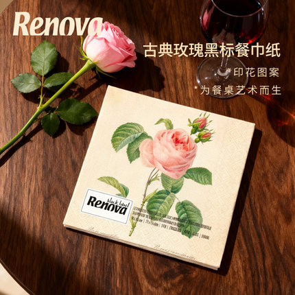 RENOVA葡萄牙进口黑标餐巾纸古典玫瑰印花仪式感小资情调礼物送礼