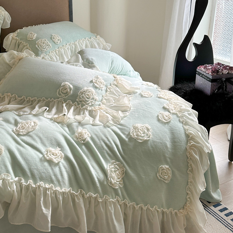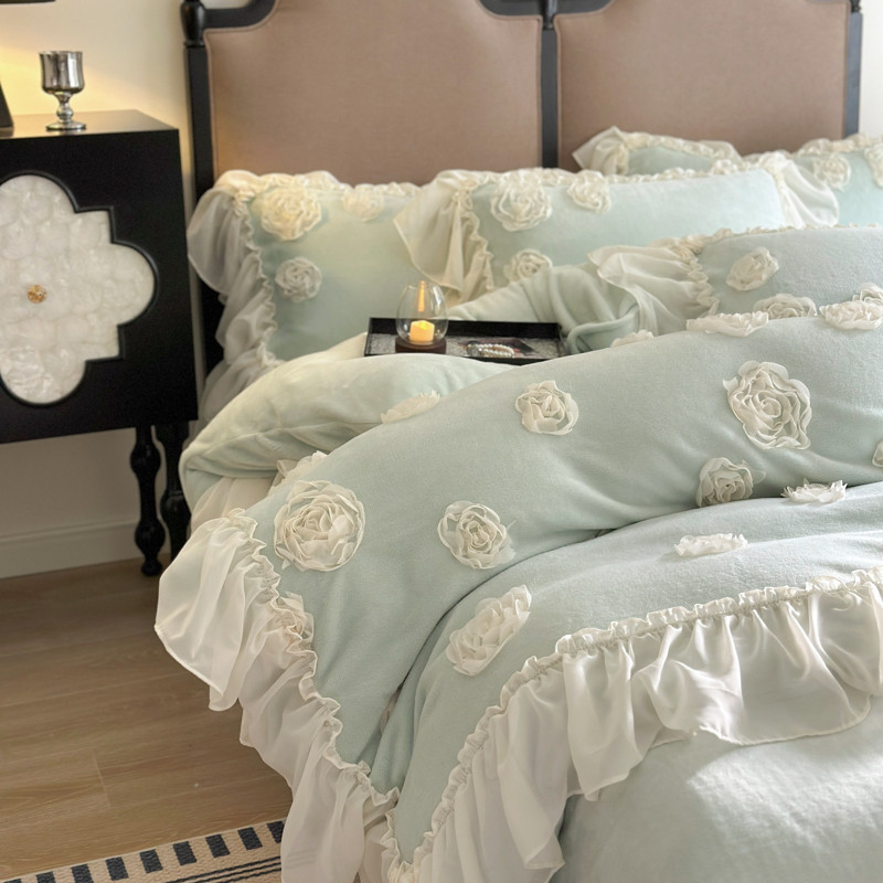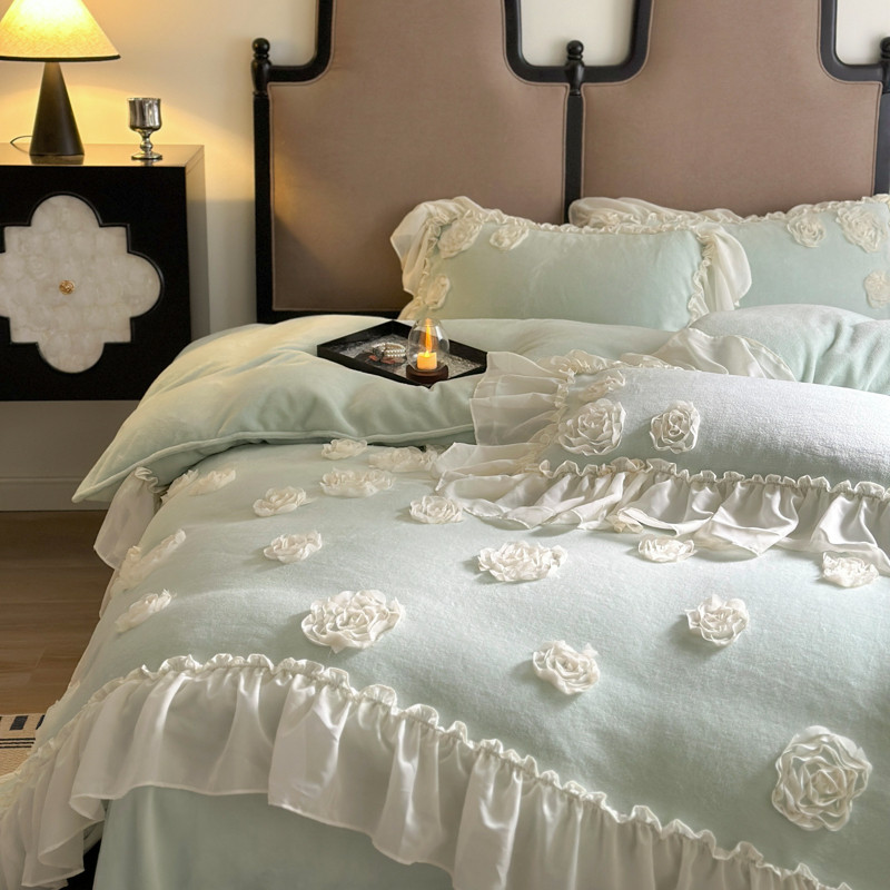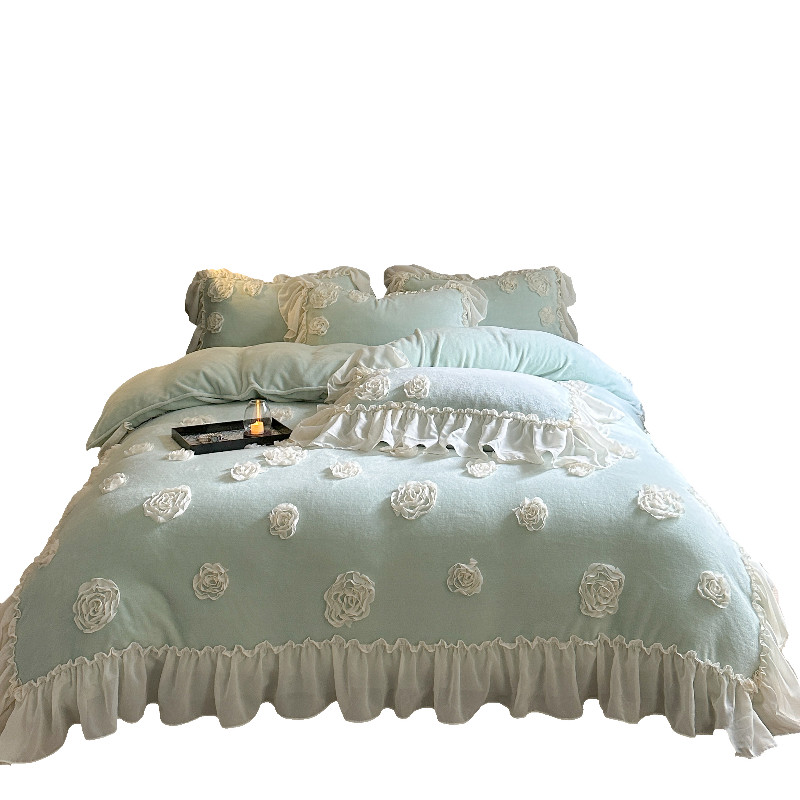冬季公主风加厚保暖牛奶绒四件套高级感珊瑚绒双面绒少女心床品4